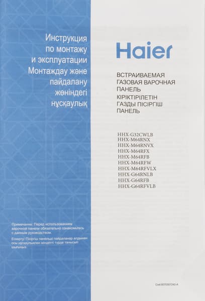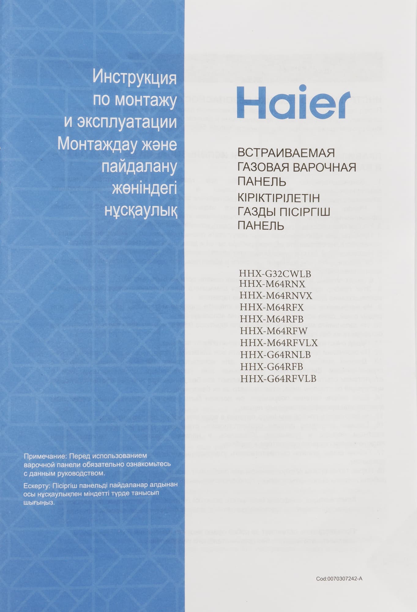 Инструкция Haier HHX-G64RFVLB представляет собой 27-страничную брошюру формата А5 на русском и казахском языках.