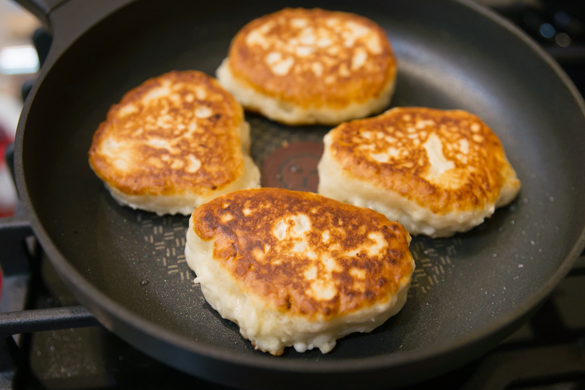 В обоих случаях обжаривание происходит оптимально быстро. Оладьи успевают покрыться золотистой корочкой, а мякиш — полностью пропечься.