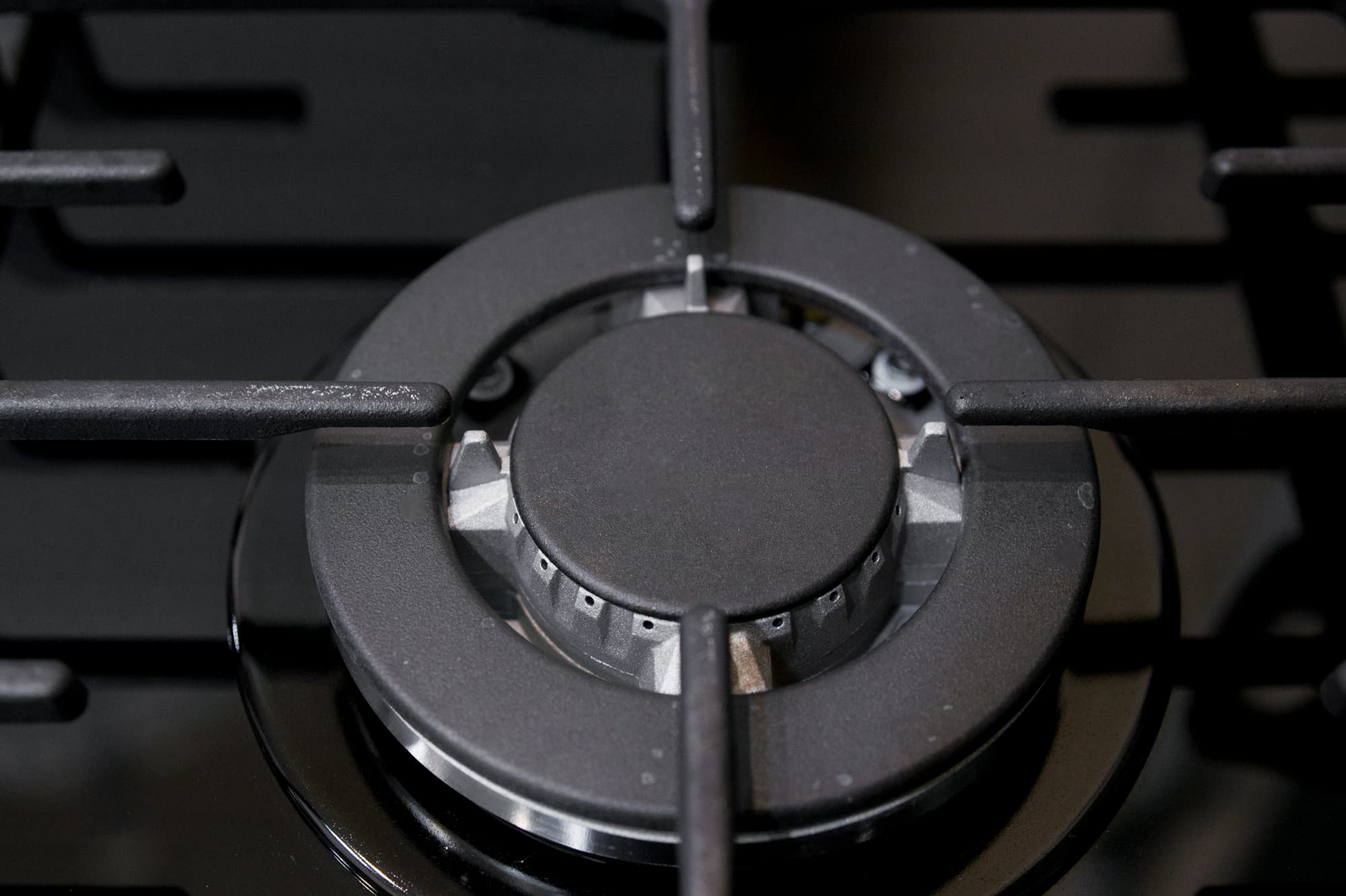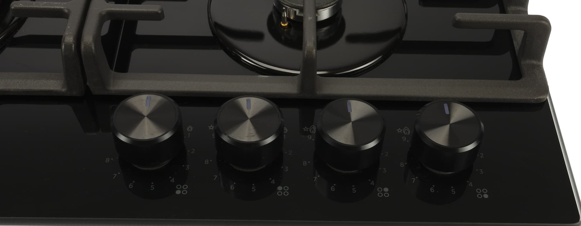 Главное отличие этой модели — в 9-ступенчатом контроле пламени. Ручки с ощутимым тактовым ходом точно регулируют огонь по предустановленным уровням мощности. Дополнительный комфорт создает яркая подсветка регуляторов. С безопасностью тоже всё в полном порядке: газ-контроль срабатывает через 5 секунд после срыва пламени. Стоит отметить, что задуть пламя совсем непросто — с самой мощной конфоркой даже на минимальном уровне мощности мы так и не справились.
