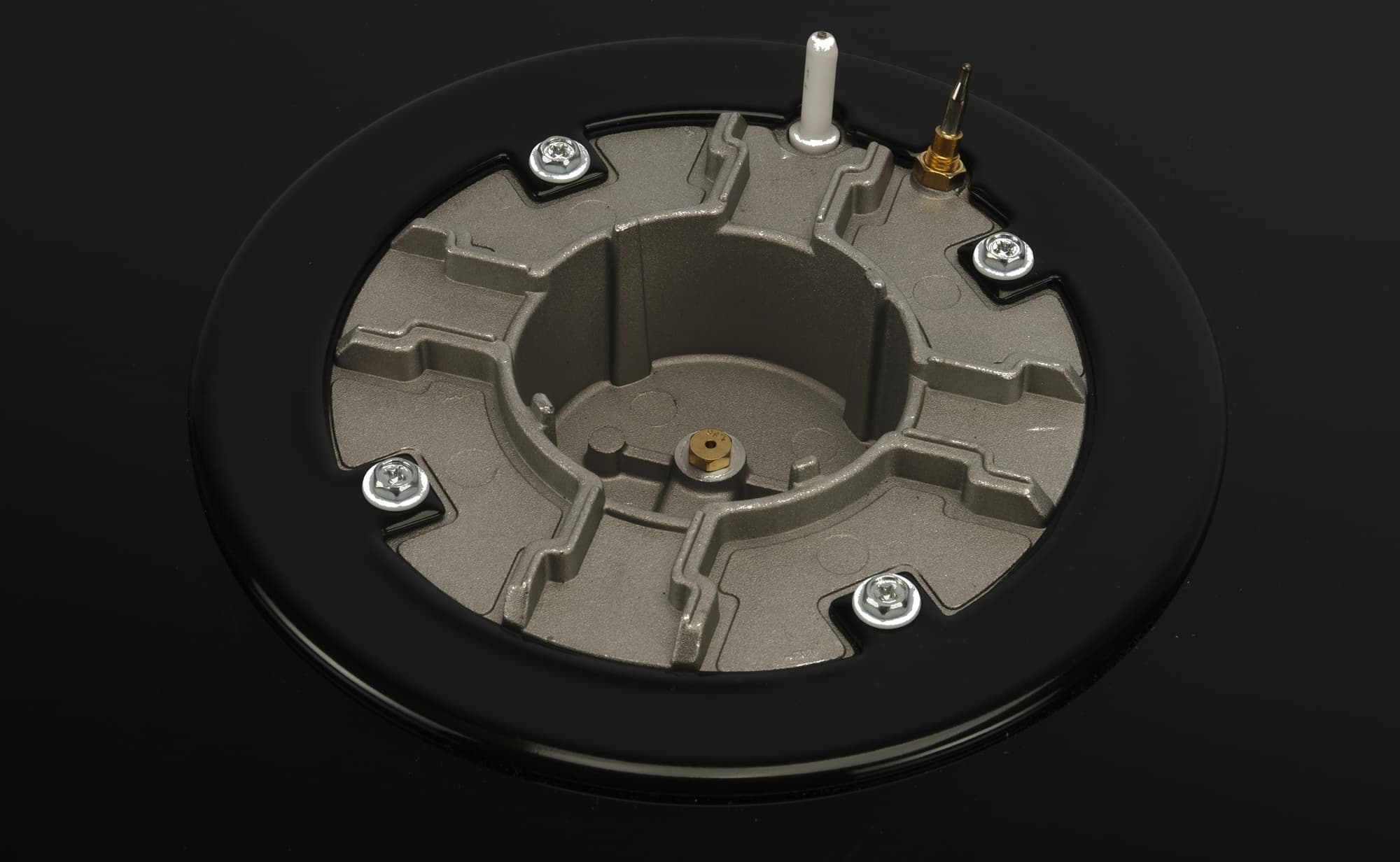 Каждая конфорка оснащена электроподжигом, газ-контролем и металлической накладкой для защиты от подтекания жидкости внутрь.