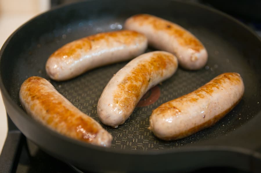 В другой сковороде на большой конфорке в это время обжаривались колбаски.