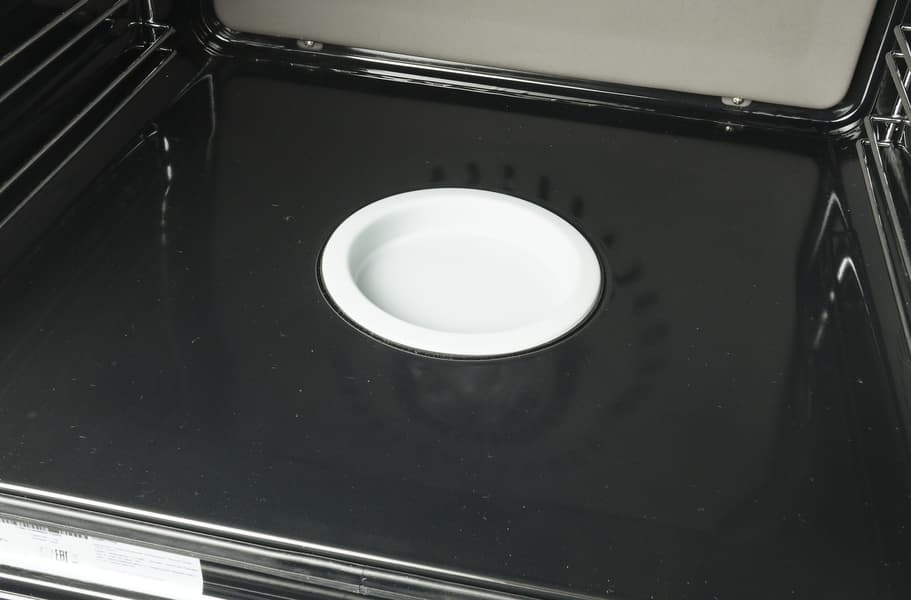 На внешних боковых стенках духовки выштамповки и ручки в виде углублений с пластиковыми вставками для удобства переноски.