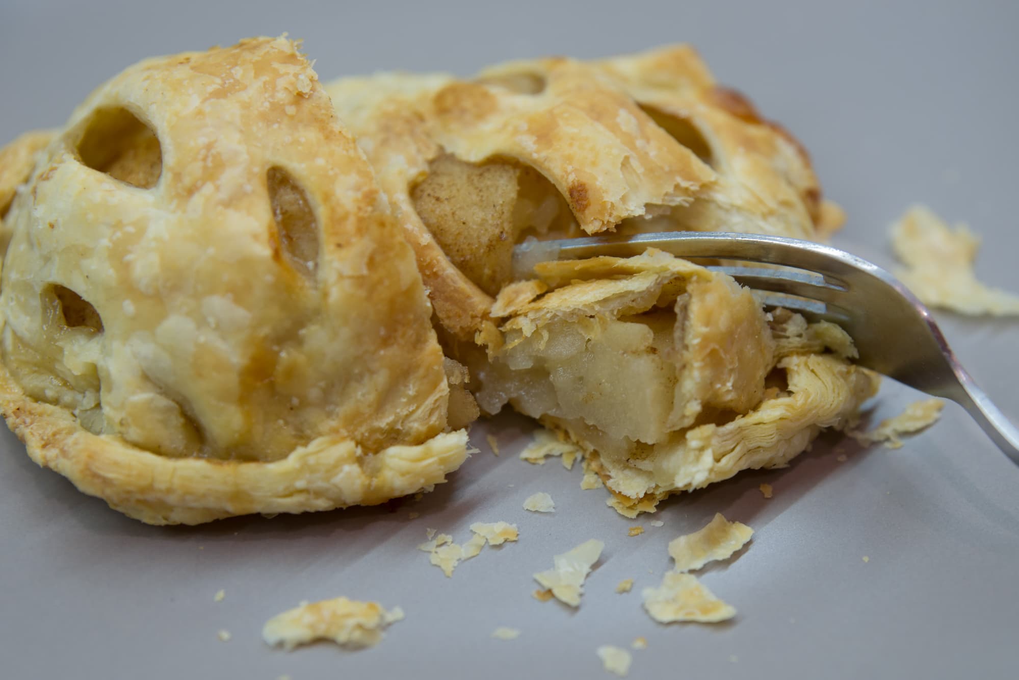 Яблоки стали очень мягкими, а тесто, в особенности снизу, хрустящим — всё как планировалось.