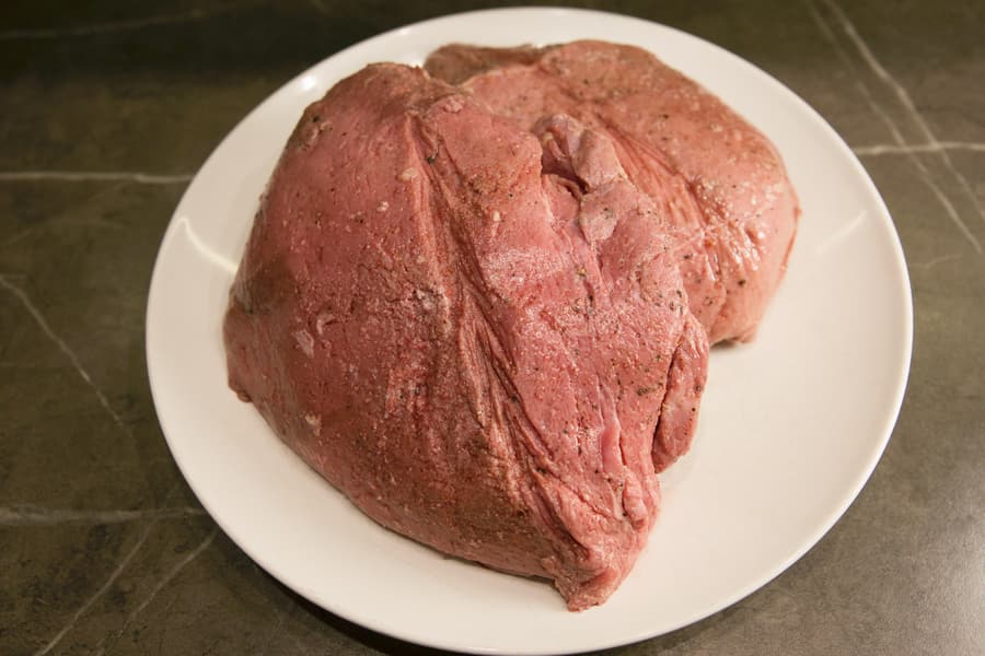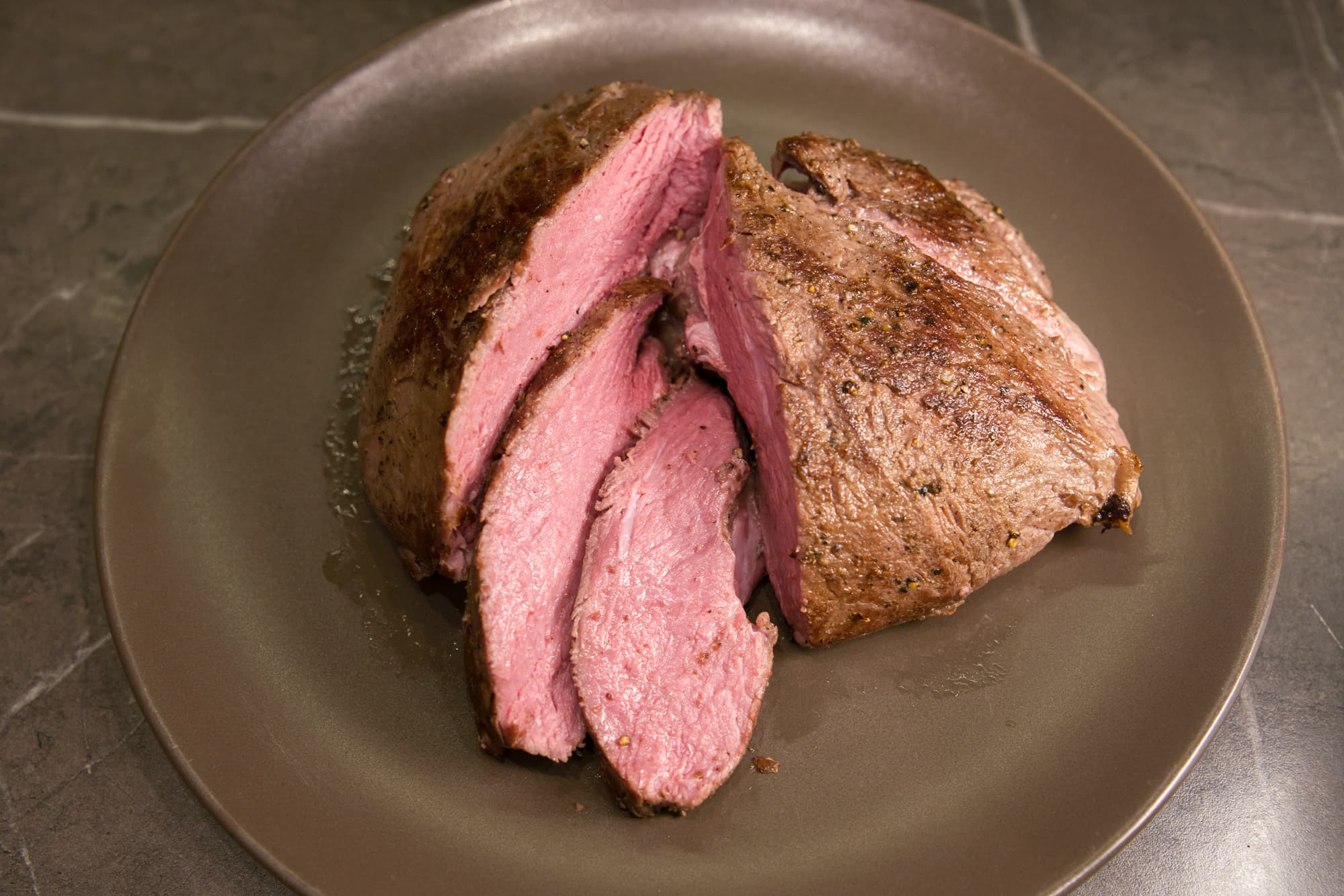 В итоге, спустя 7 часов мы получили роскошное мягкое мясо розового цвета, равномерно приготовленное по всему куску.