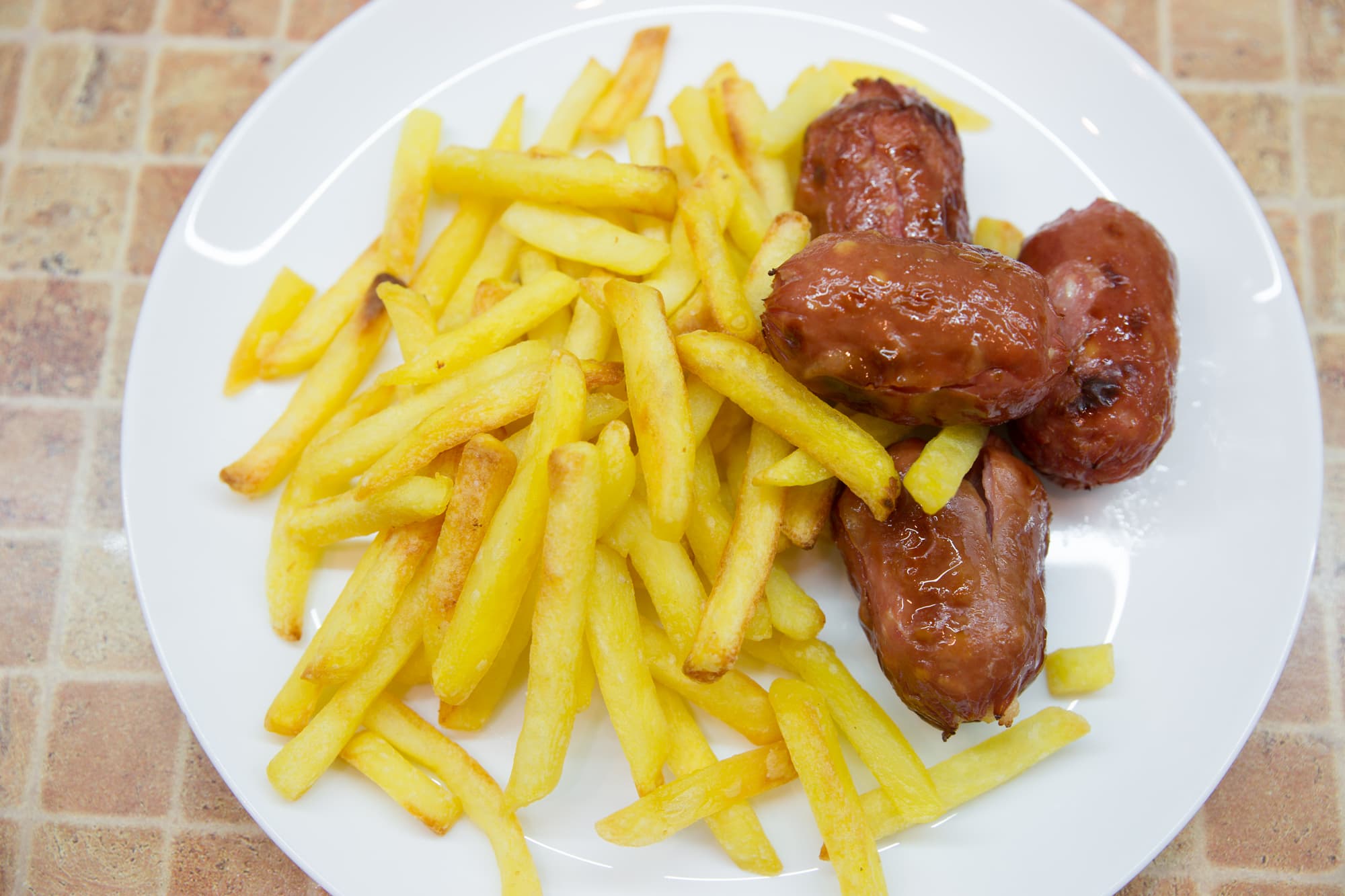 Картофель-фри и колбаски