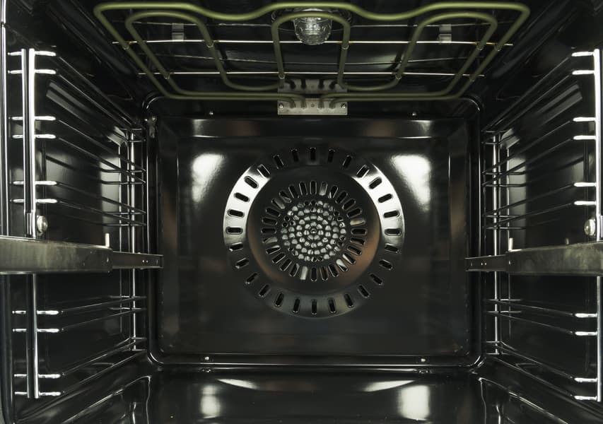 - Выпечка с конвекцией. В этом случае работают верхние и нижние нагревательные элементы, а вентилятор, в свою очередь, разгоняет тепло по всем уровням камеры для максимальной равномерности запекания. Диапазон нагрева от 30 до 250 °C с шагом 1 °C.