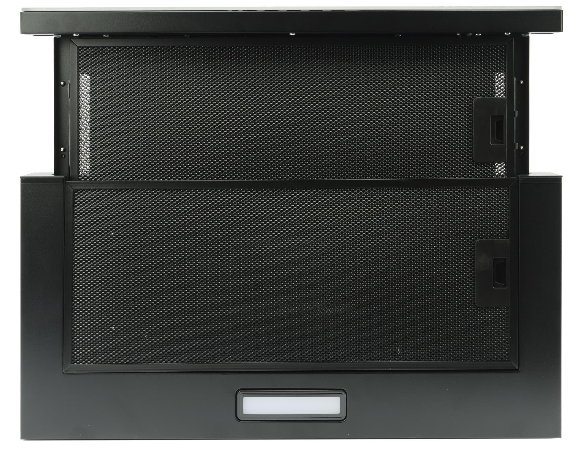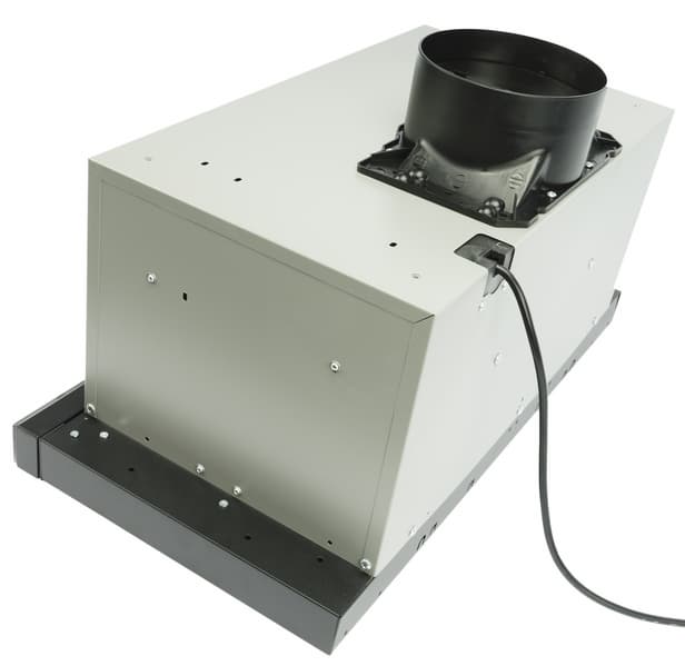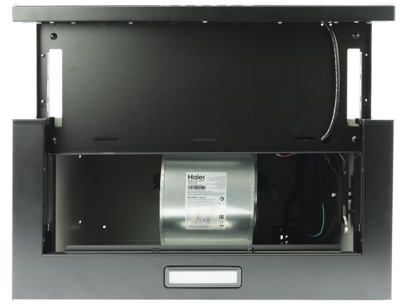 Во-первых, они являются исключительно встраиваемыми. Пользователь получает доступ лишь к панели управления, расположенной на выдвижной части прибора, а также к нижней плоскости, в которой расположены два антижировых фильтра. Все остальное оказывается спрятано за фасадом кухонного гарнитура.