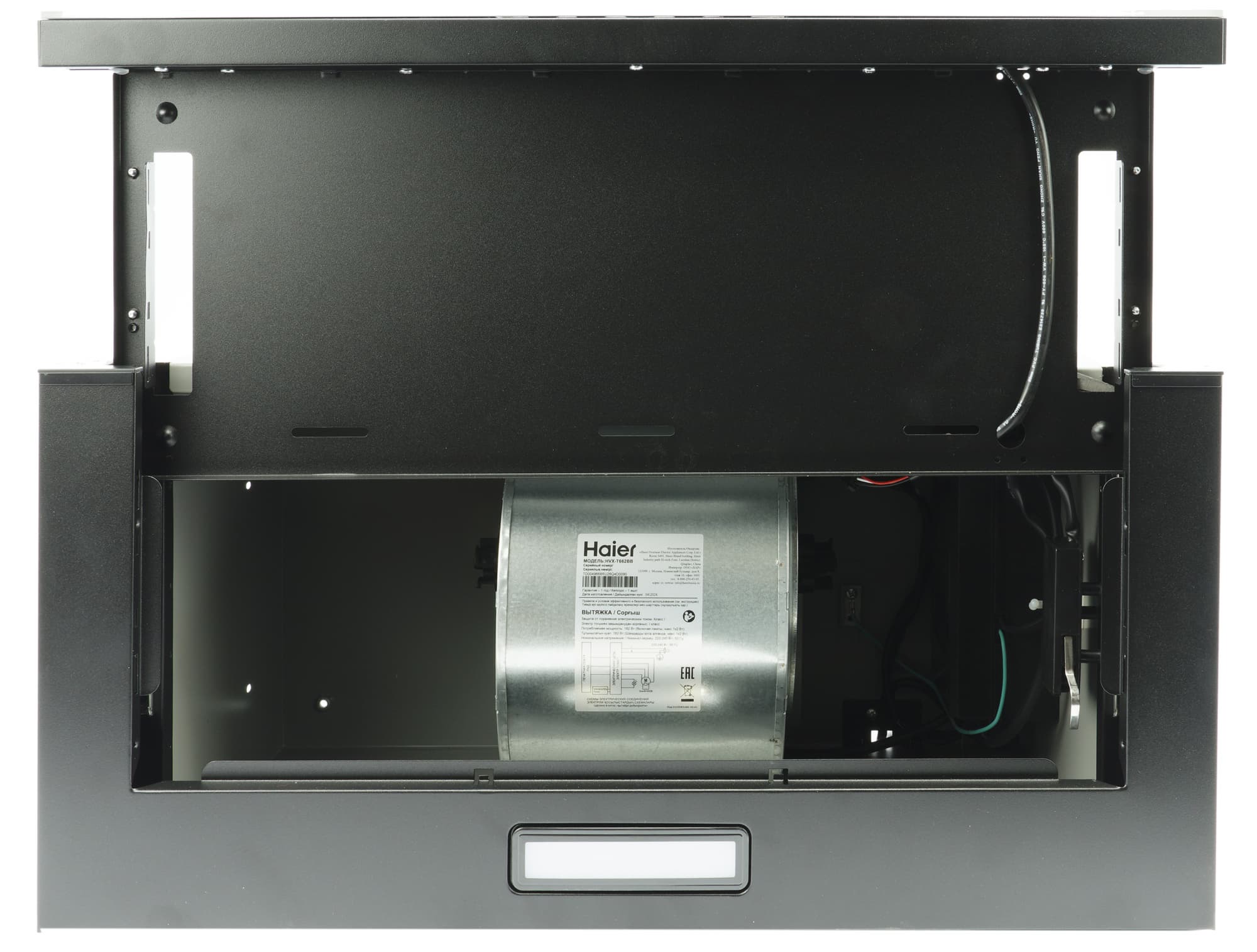 Выдвижная панель оборудована концевым датчиком: освещение и вентиляция при складывании отключаются автоматически.
