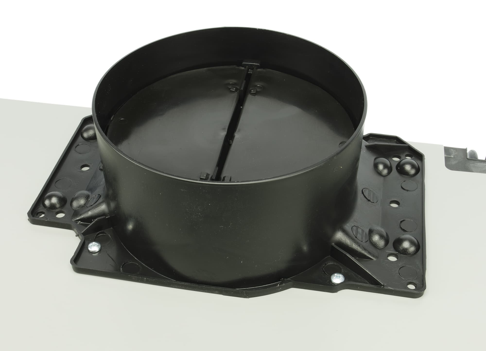 Клапан закрепляется на корпусе с помощью четырех винтов, которые можно найти в коробке с вытяжкой.