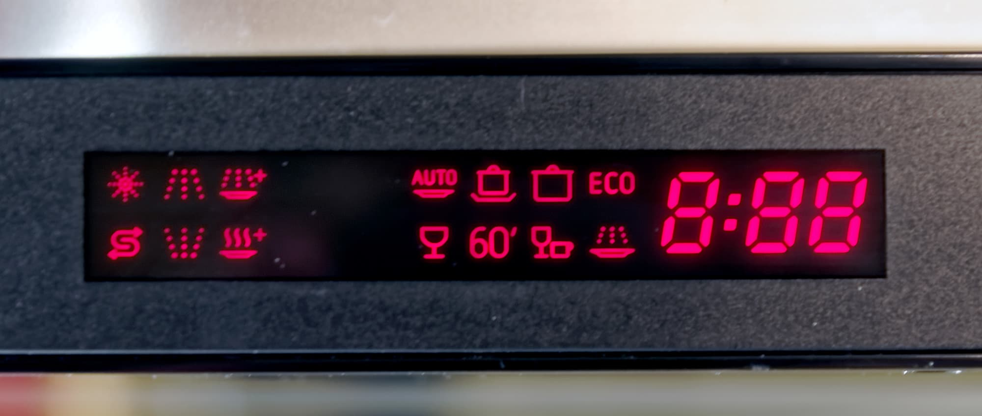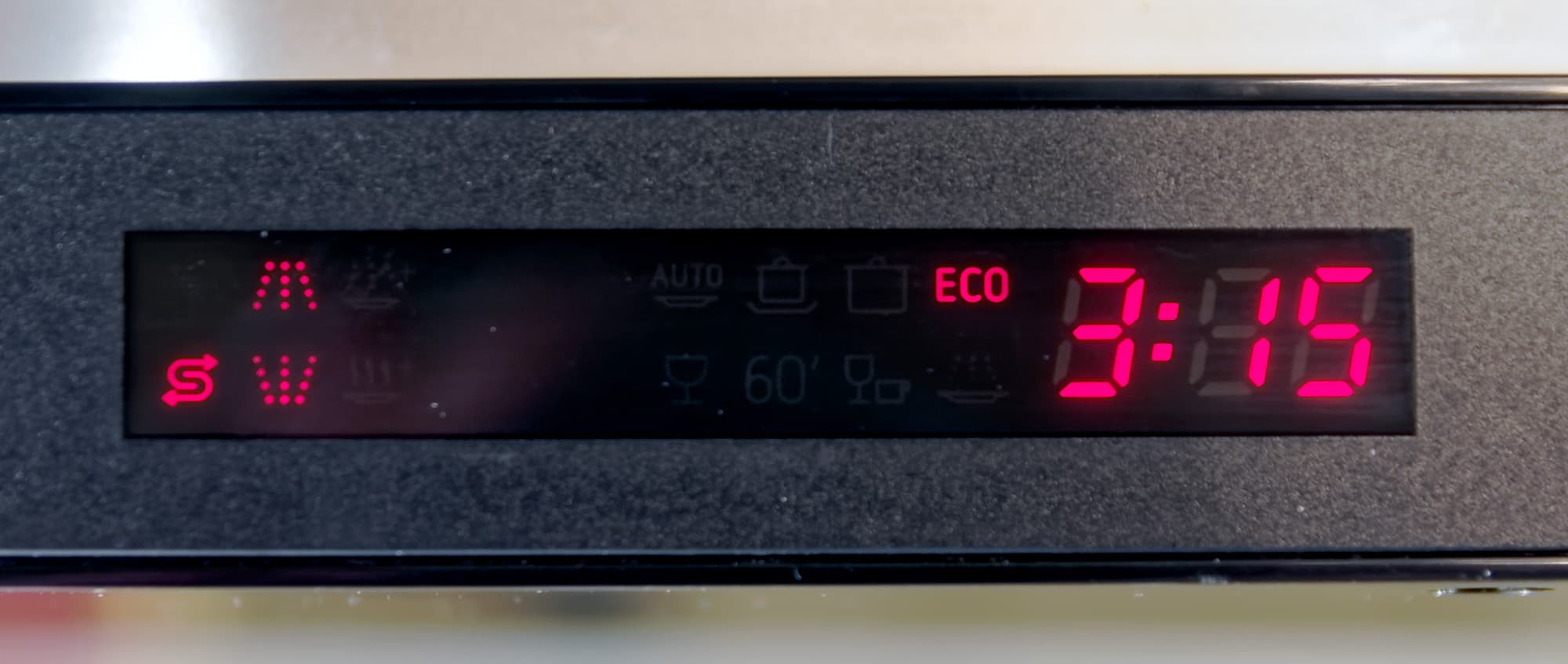 Управление посудомоечной машиной осуществляется с помощью пяти сенсорных кнопок и дисплея с индикаторами. Кнопки нажимаются адекватно: ложных срабатываний нет, показания с дисплея считываются при любом освещении.