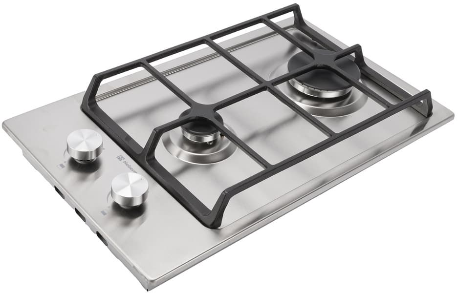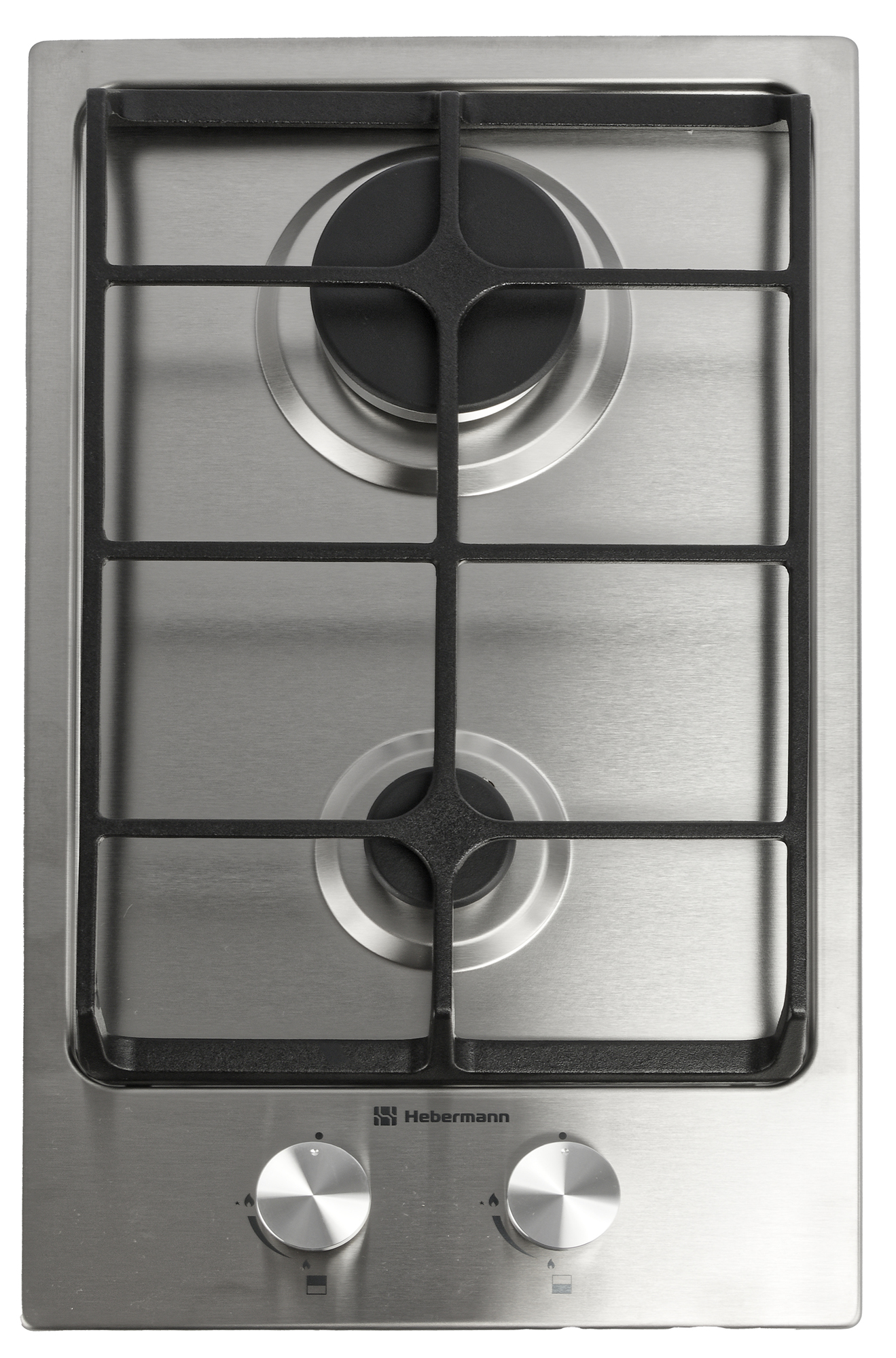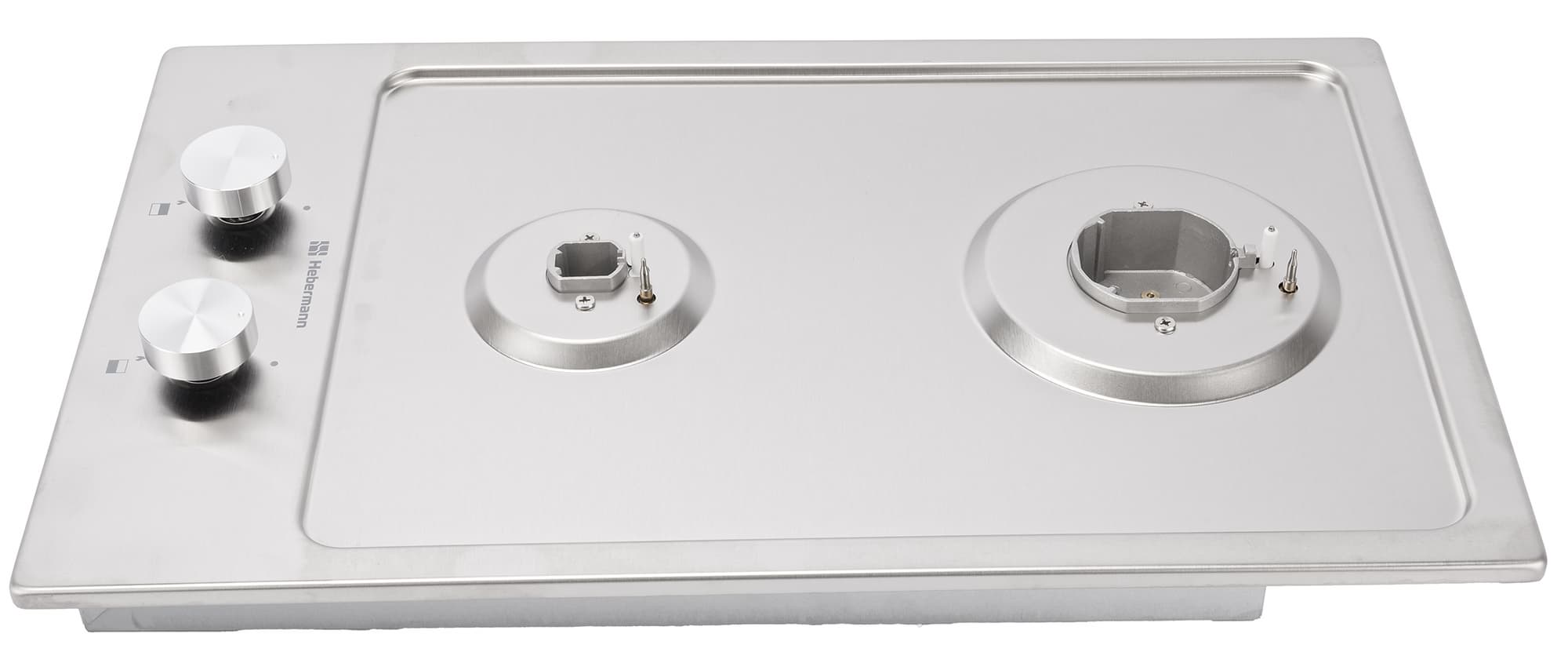 Hebermann HBGS 302.1 X — бюджетная встраиваемая газовая варочная поверхность, предназначенная для работы с магистральным и баллонным газом. Устройство оснащено двумя конфорками, механическими круглыми регуляторами, автоматическим поджигом и газ-контролем.