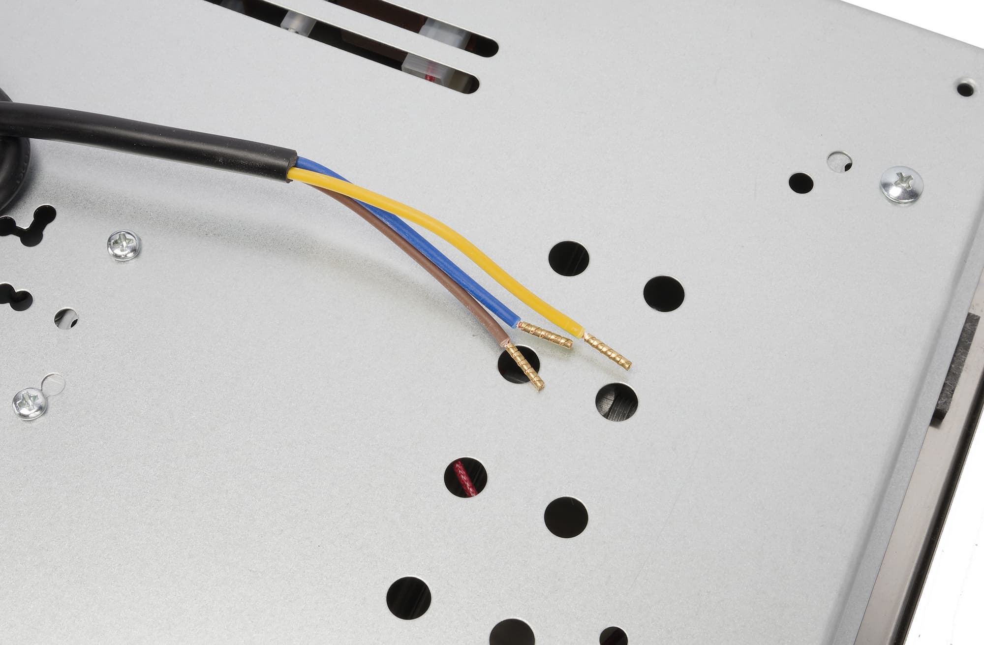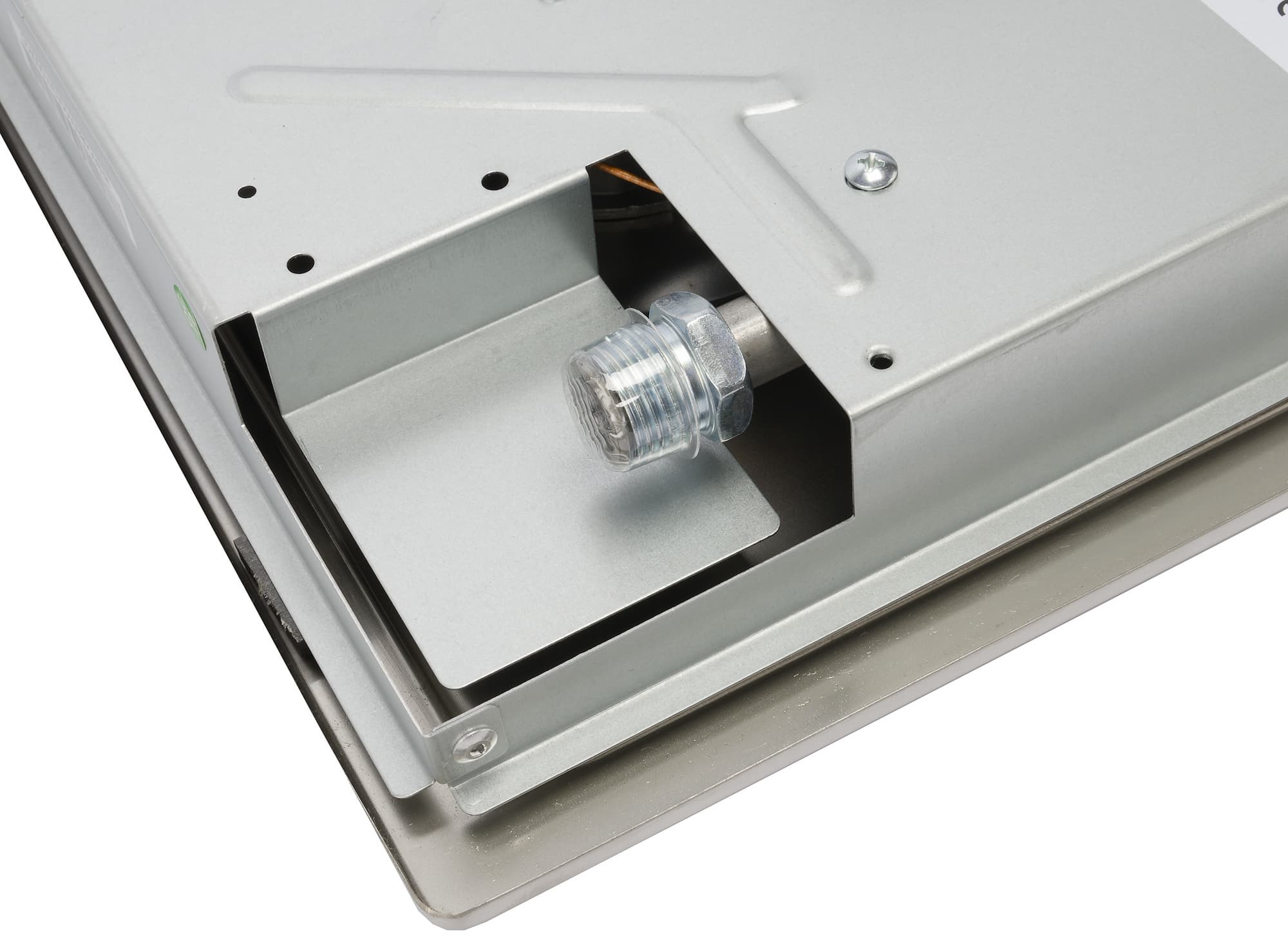 Необходимый размер ниши для монтажа — 490×270×40 мм, с нижней стороны панель удерживается крепежными элементами (фиксаторами) с помощью винтов из комплекта. Между столешницей и панелью прокладывается уплотнительная лента.