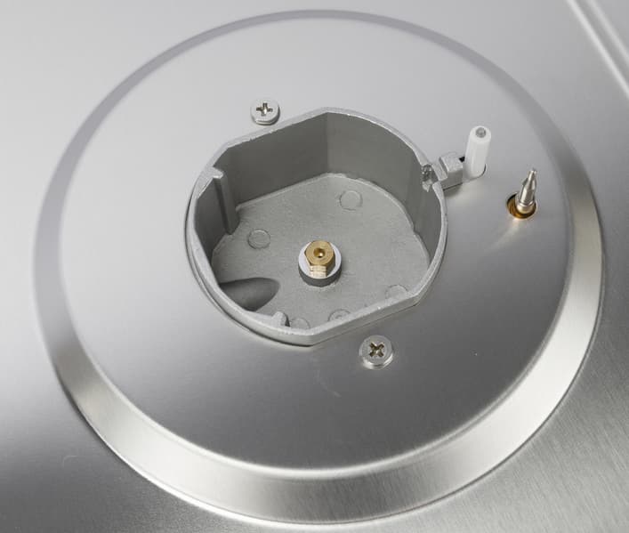 Ближняя конфорка имеет мощность 1000 Вт, дальняя — 3000 Вт. Рассекатели устанавливаются в гнезда четко, без перекосов. Крышки рассекателей достаточно тяжелые, выполнены аккуратно. Конструкция легко собирается и разбирается для очистки.