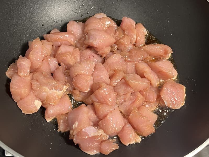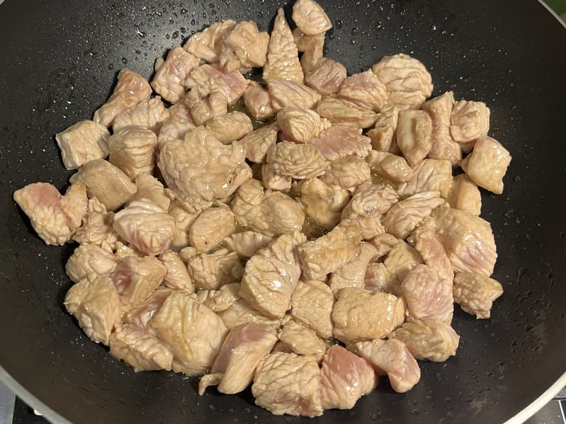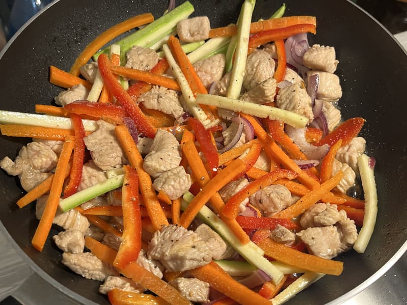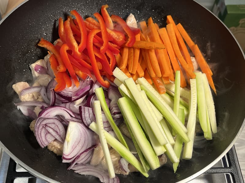 Выложили эти продукты на сковороду и поставили на сильный огонь.