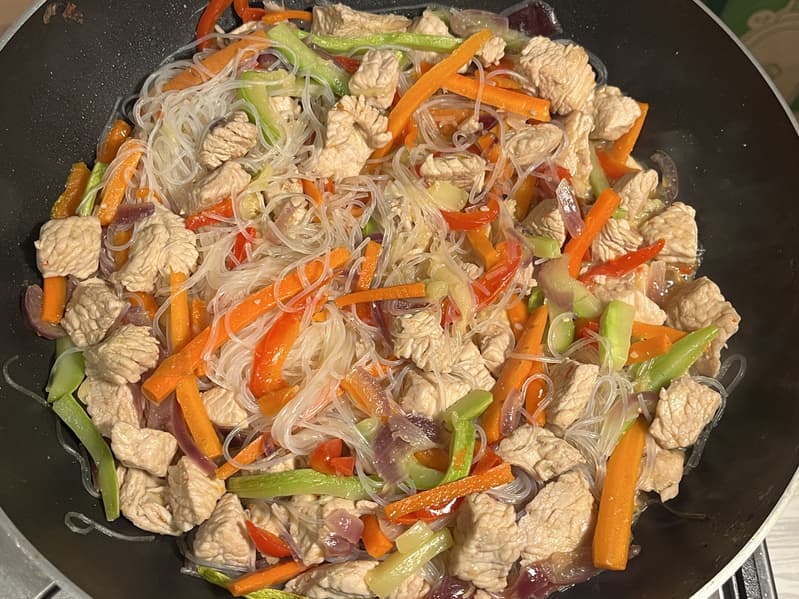 Первым тестом мы выбрали приготовление «стеклянной» лапши в большой вок-сковороде.