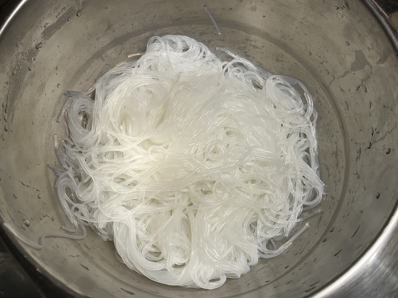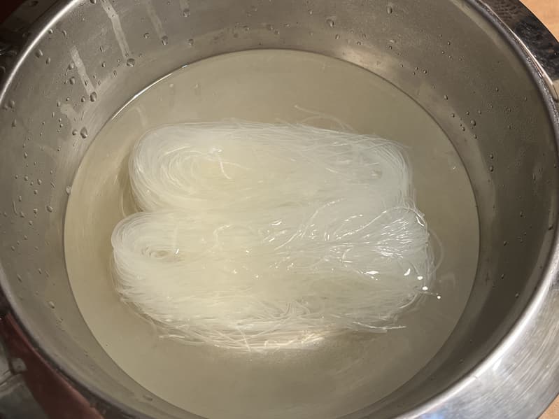 Фунчозу мы залили только что вскипевшей водой из нашего предыдущего тестирования. И оставили так на 5 минут.