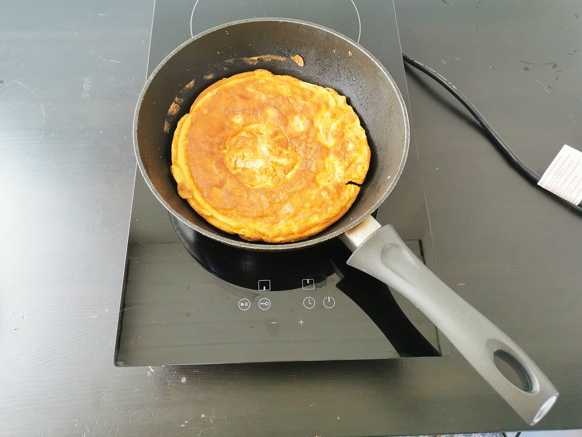 Примерно на четвертом блине плитка уже сильно нагрелась (мы использовали 9-й режим) и блинчики стали немного подгорать, а когда мы путем проб добрались до идеального режима 6, наши блинчики стали пропекаться дольше из-за больших интервалов между нагревами. Это не было критично, но значительно замедлило процесс выпекания.