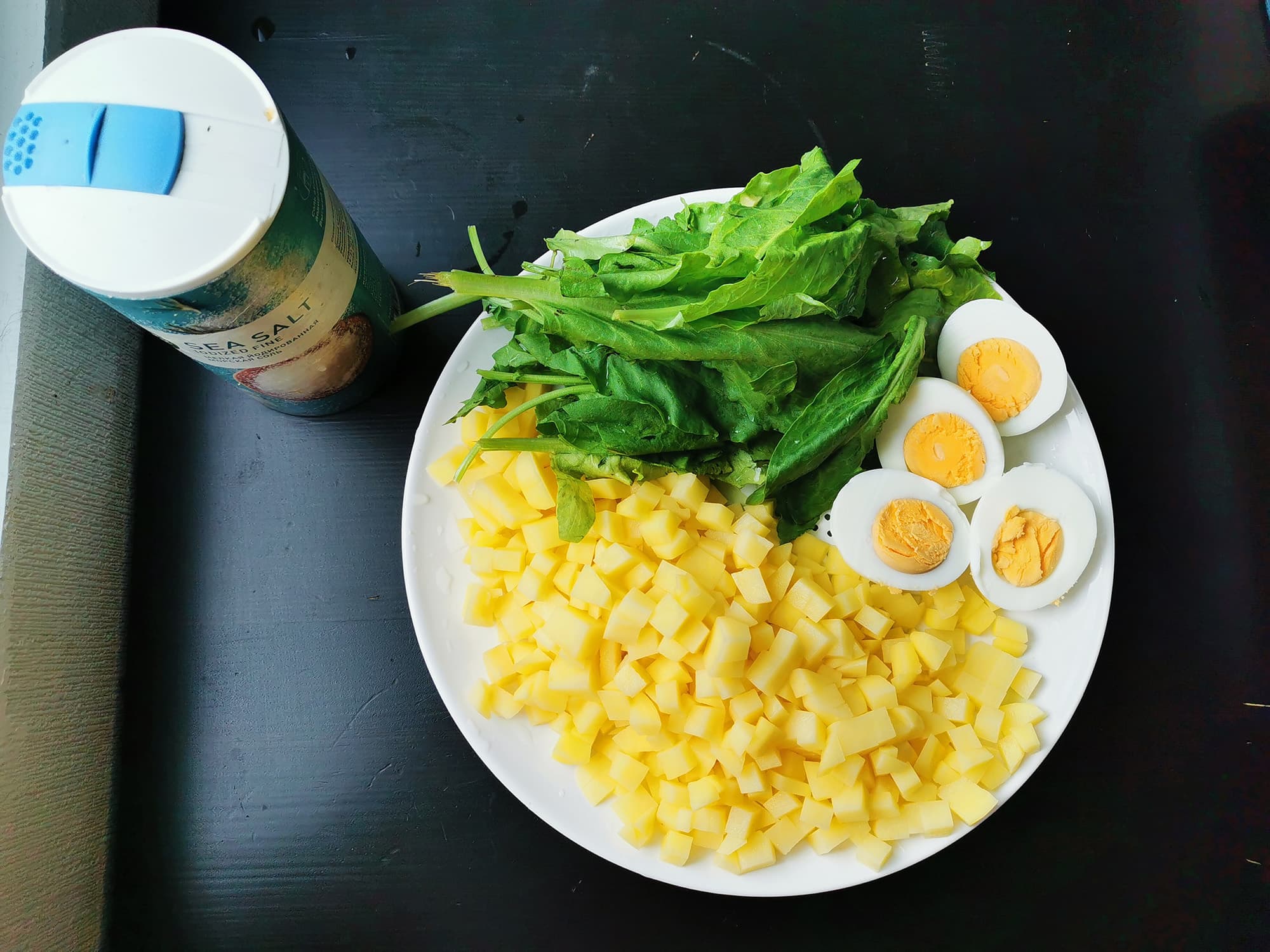 Для супа нам понадобились простые ингредиенты: картофель, щавель, яйца, соль, плюс мы добавили в бульон немного льняного масла для наваристости.