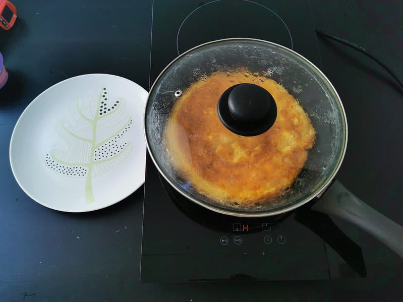 А чтобы омлет получился нежным, ему обязательно нужно после обжаривания немного потомиться под крышкой.