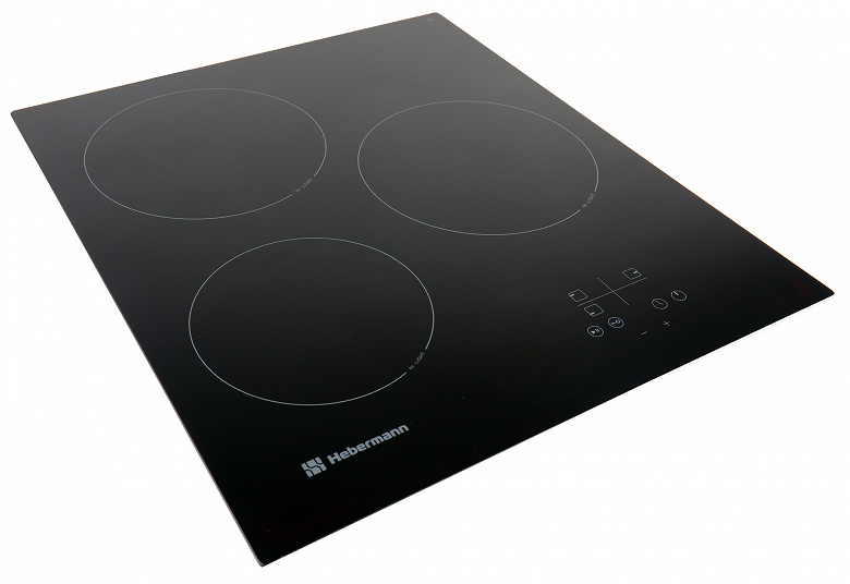 Чаще всего бытовые плиты большие, на 4 конфорки, реже встречаются двухконфорочные, а Hebermann HBKC 4530.1 имеет три рабочие конфорки, 1800, 1800 и 1200 Вт, как некий компромисс между функциональностью и размером. Слева на стеклокерамической поверхности расположена средняя конфорка, за ней — большая, справа — панель управления, а за ней — вторая большая конфорка. Дизайн лаконично-минималистичный, вписывающийся в большинство современных интерьеров.
