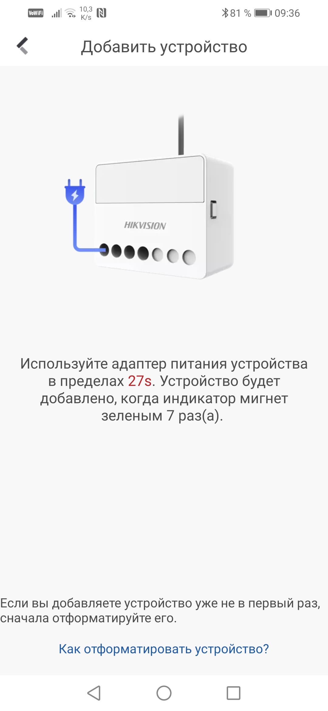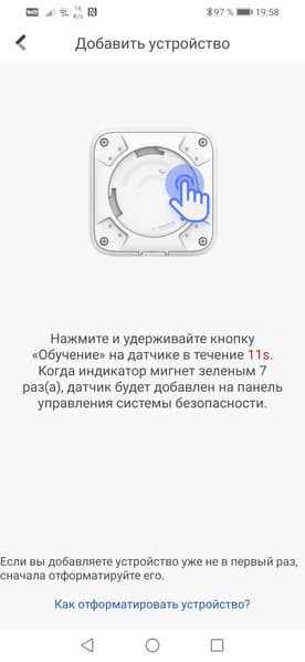 Подключение всех прочих датчиков осуществляется похожим образом, но с большой разницей: теперь хаб самостоятельно отыскивает их сигнал в зоне доступности. А для активации того или иного датчика требуется нажать на нем какую-либо кнопку, это всякий раз обусловливается конструкций датчика. Что приятно: приложение, определив тип датчика, отображает наглядную инструкцию, показывающую, где и какую кнопку следует нажать на датчике. Например, у датчика протечки имеется герметичная кнопка на донышке, которую и не сразу разглядишь. Но подсказка помогла! А у переключателя вообще нет никаких кнопок, как же быть? Да очень просто! Нужно лишь вовремя дать ему стандартное 220-вольтовое питание.