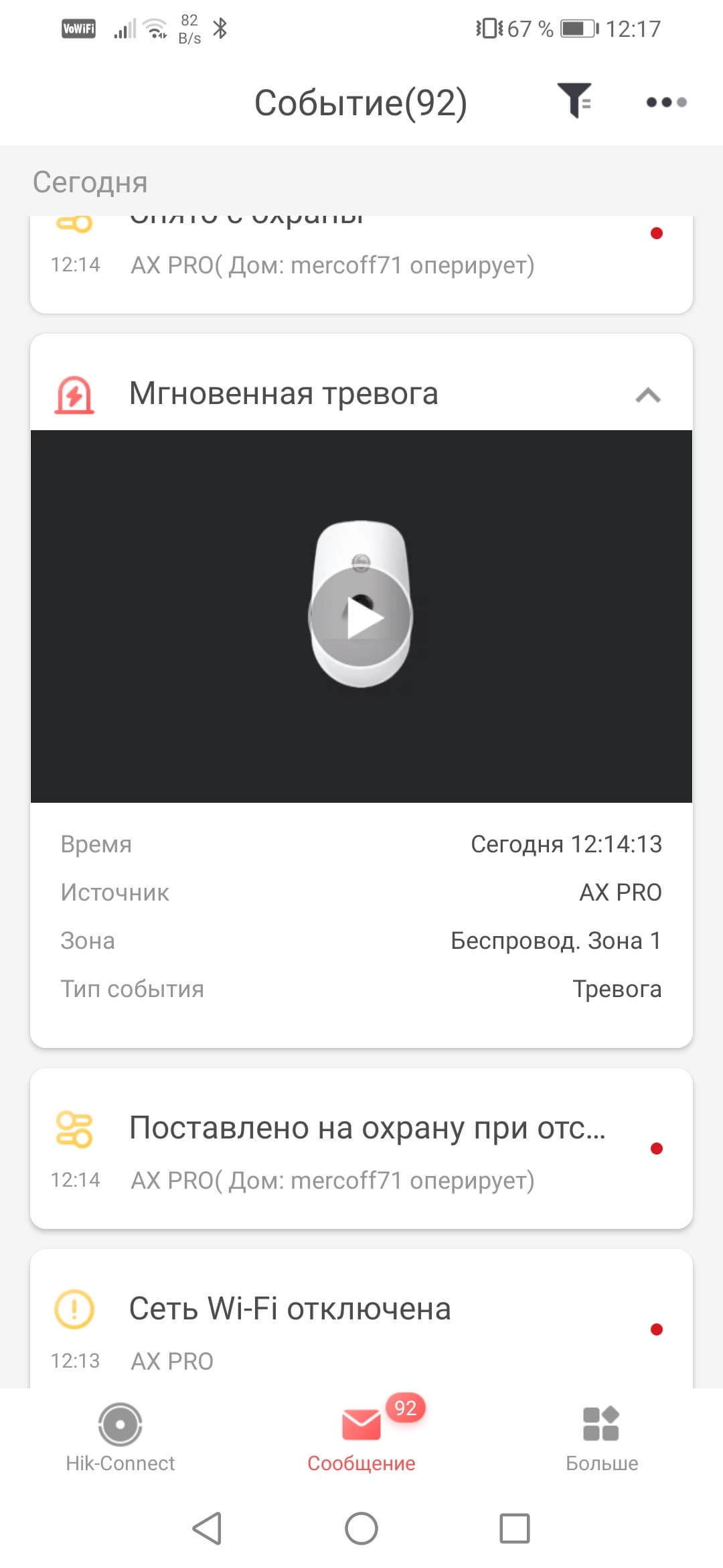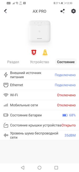 Вероятно, это будет самая короткая глава. Ведь что тут описывать? Работу датчиков? А что, кто-то сомневается, что геркон может не сработать на открытие, или датчик дыма не в состоянии уловить малейшее изменение непрозрачности воздуха? Что же в таком случае еще? Сбои в работе, возникающие ошибки? А вот этого не получится. Поскольку, если таковые и случались в недолгий период тестирования системы, то вызваны были исключительно оплошностями автора, и мгновенно исправлялись благодаря связи со специалистами Hikvision. Иногда ошибки были до смешного обидными. Например, эти постоянно всплывающие сообщения об отсутствии связи. Какое отсутствие связи, если система — вот она, работает и все отображает в приложении! Оказывается, нужно было просто отключить регулярную проверку доступности мобильного канала, когда SIM-карта отсутствовала в хабе. Вот для того и существуют специалисты-установщики, чтобы исключить эти досадности.