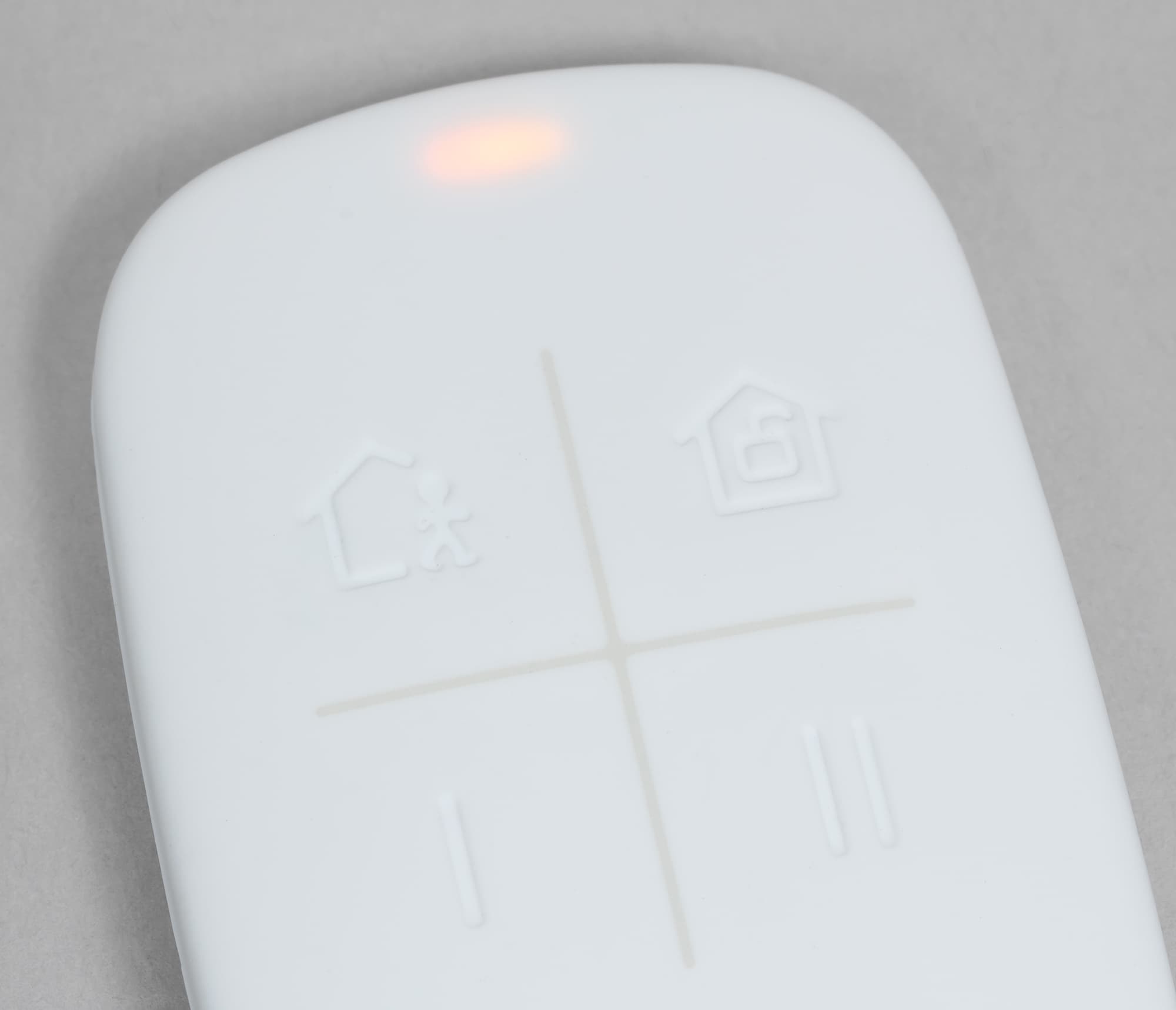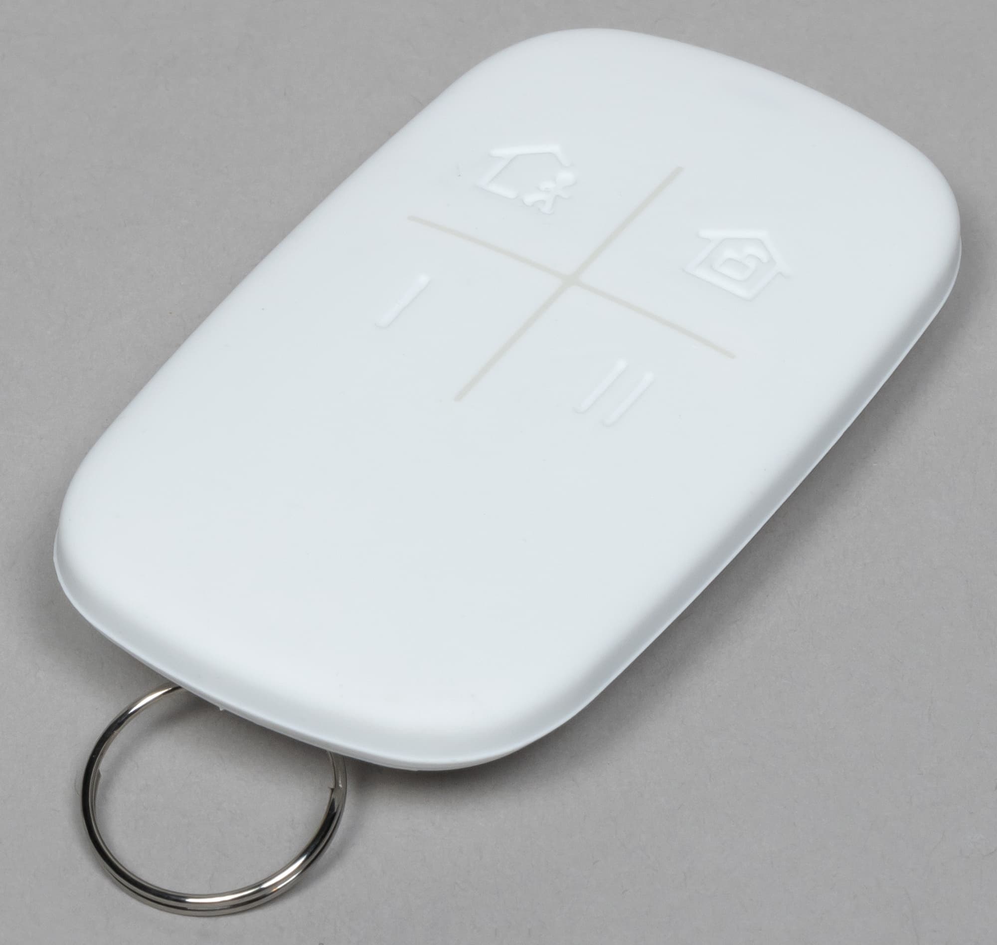 Наконец, последнее устройство в комплекте — переносной пульт управления системой. Он выполнен в виде миниатюрного брелка с четырьмя кнопками с колечком для крепления к связке ключей. Ну, кто-то и на шею повесит, несомненно. А что, вполне симпатично.