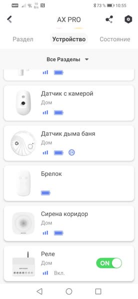 В итоге недолгой работы дом оказался наполнен полным списком имеющихся датчиков. Кстати, каждое устройство, добавленное в систему, можно переименовать как угодно, указав любое его расположение вплоть до уточнения помещения, где оно находится. Примечательно, что на страничке устройств рядом с каждым датчиком видно его текущее состояние: заряд батареи, сила сигнала.