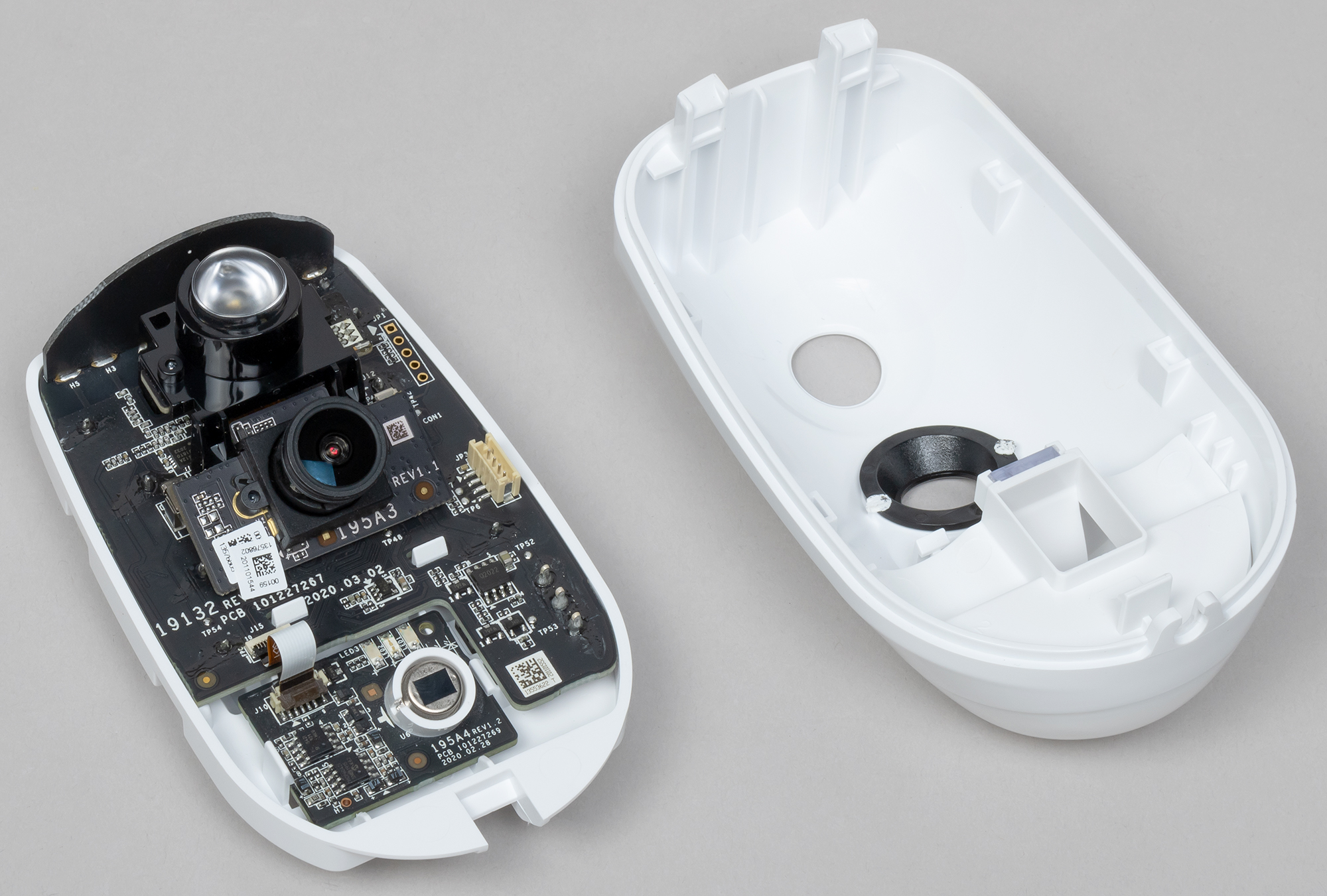 Что касается встроенной камеры, она отличается от обычных камер наблюдения тем, что не занимается постоянной передачей видеопотока. Так никаких батарей бы не хватило. Нет, камера всего лишь передает хабу серию JPG-снимков, но и то лишь в момент тревоги.