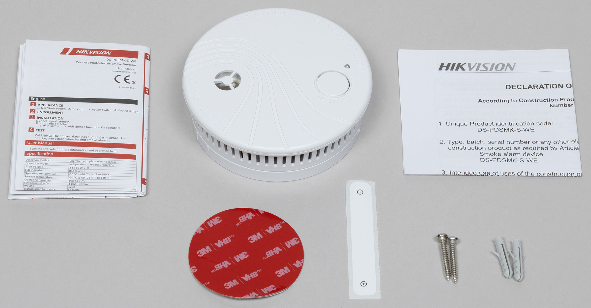 Комплектность тут вполне стандартная: саморезы с шаблоном отверстий для крепления к бетонному или деревянному потолку, и клейкая пластина для крепления к другим типам потолков, будь это пластиковые панели либо вообще ПВХ-полотно. То, что данное устройство должно крепиться именно к потолку, понятно без лишних слов. Дым — не пар, чтобы стелиться по полу.