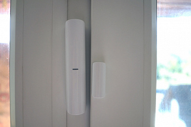 Датчик открытия разместился на двери кабинета, ведущей на балкон, датчик движения — над дверью в дом.