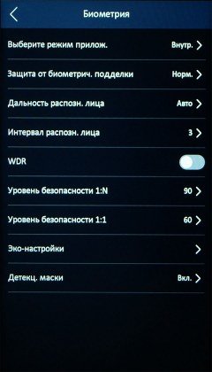 Параметры терминала во многом схожи с настройками рассмотренного выше, поэтому нет нужды повторяться, отметим лишь различия. Состав настроек прибора отличается от списка параметров, доступных в изученном выше тепловизионном терминале. Но, как уже говорилось, отсутствие какой-то функции в одном устройстве компенсируется наличием другой. Например, в этом терминале есть возможность навести на лицо красоту, убрать изъяны. Так, как это делают камеры смартфонов (точнее, их софт). Ну, бывает, какая-то сотрудница не успела с утра навести порядок на лице, прибыла на работу, запыхавшись — зачем ее дополнительно расстраивать, показывая на экране суровую действительность? Функция, конечно, забавная, но почему бы и нет?