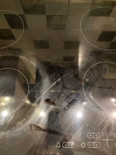 Следующим этапом мы решили проверить работу пароочистителя Hiomee на стеклокерамической поверхности варочной панели. На фото до начала теста хорошо видны разводы и следы от приготовления пищи.