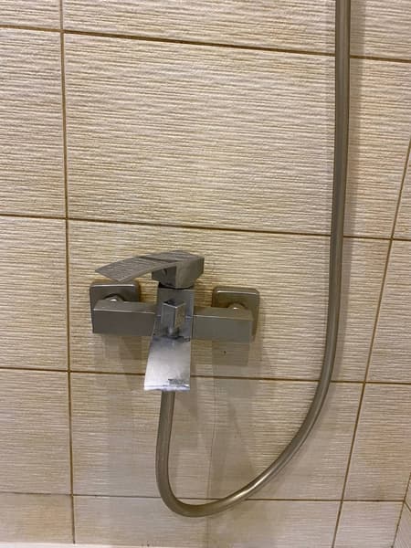 Результат: плитка очистилась хорошо, особенно на открытых участках стены. Однако в труднодоступных местах, рядом с водопроводным краном и внутри креплений, отложения полностью убрать не удалось, здесь потребуется доработать щеткой вручную.