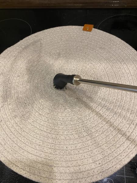Также пароочиститель отлично справился с кухонной салфеткой плотного плетения — загрязнения были удалены полностью, без следов и повреждений ткани, но при этом она излишне намокла. При работе с ковром, где пятна были застарелыми, результат оказался менее однозначным: на месте старых загрязнений в результате остались небольшие следы. Поэтому при обработке ковров и других тканевых поверхностей рекомендуется предварительно протестировать прибор на небольшом участке, чтобы убедиться, что материал не изменит цвет и не повредится под воздействием пара.