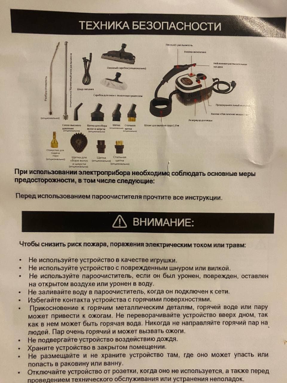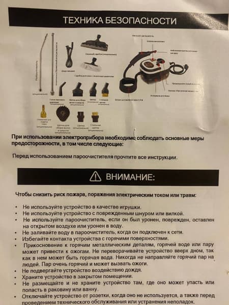 - Не использовать пароочиститель, если он был уронен, поврежден или попадал в воду.