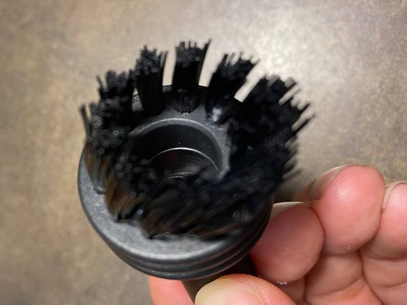 Отдельно стоит отметить нейлоновую щетку: даже при минимальном использовании щетина быстро погнулась и потеряла форму. Можно сделать вывод, что уже после 2-3 операций такая насадка скорее всего придет в негодность и ее эффективность резко снизится.