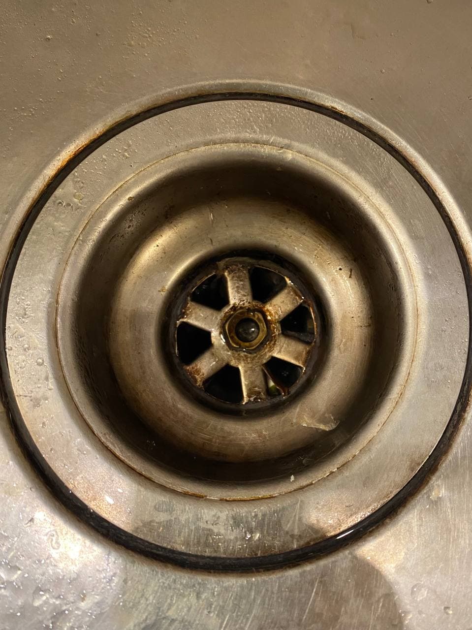 Следующим объектом испытания стала кухонная раковина: место слива воды и участки вокруг него, где обычно скапливается жировой налет и известковые отложения.