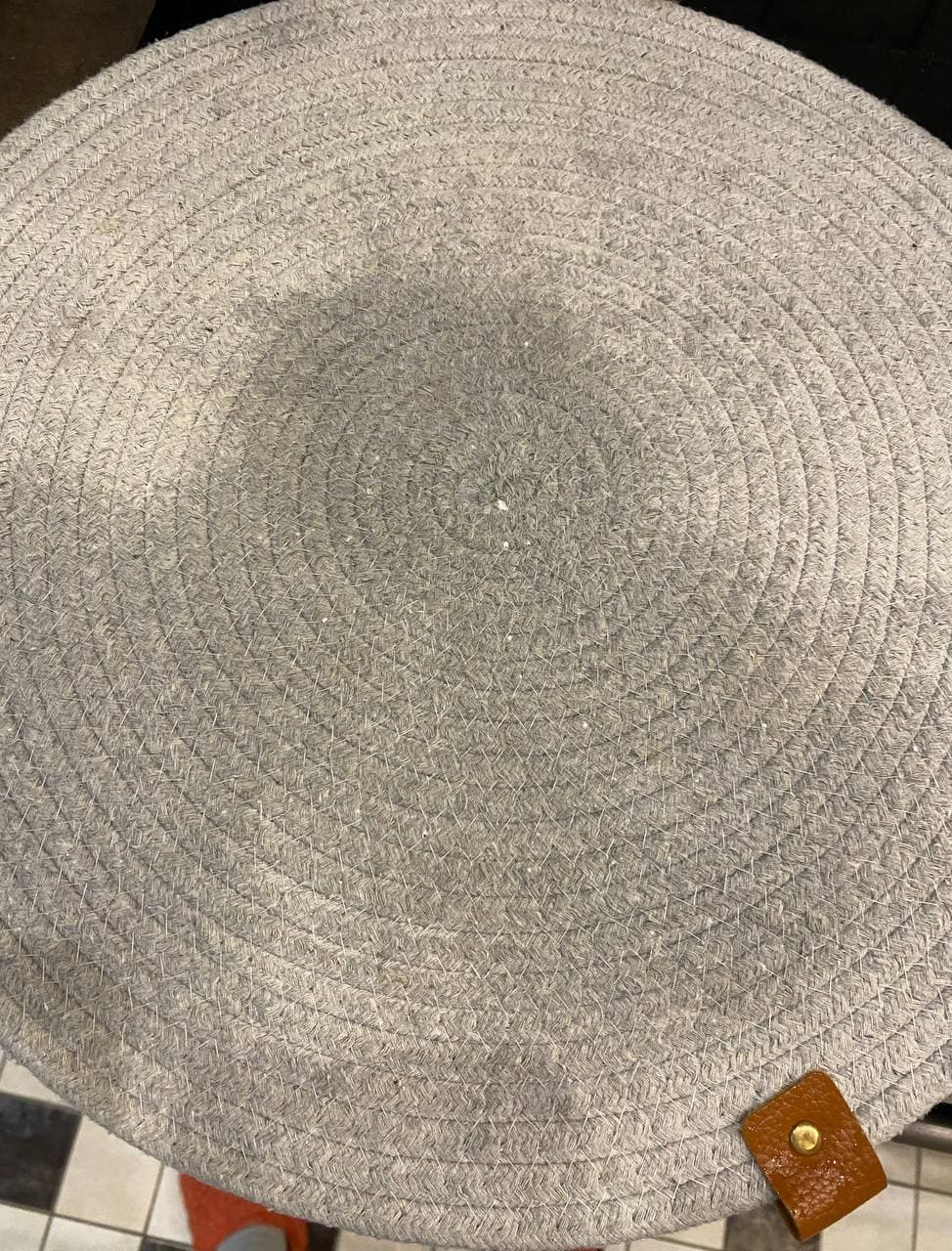 Для следующего эксперимента мы решили проверить, как пароочиститель Hiomee справится с удалением загрязнений с тканевых поверхностей. В качестве тестового образца выбрали кухонную салфетку плотного плетения, которую нежелательно стирать в машинке, так как она может потерять форму.