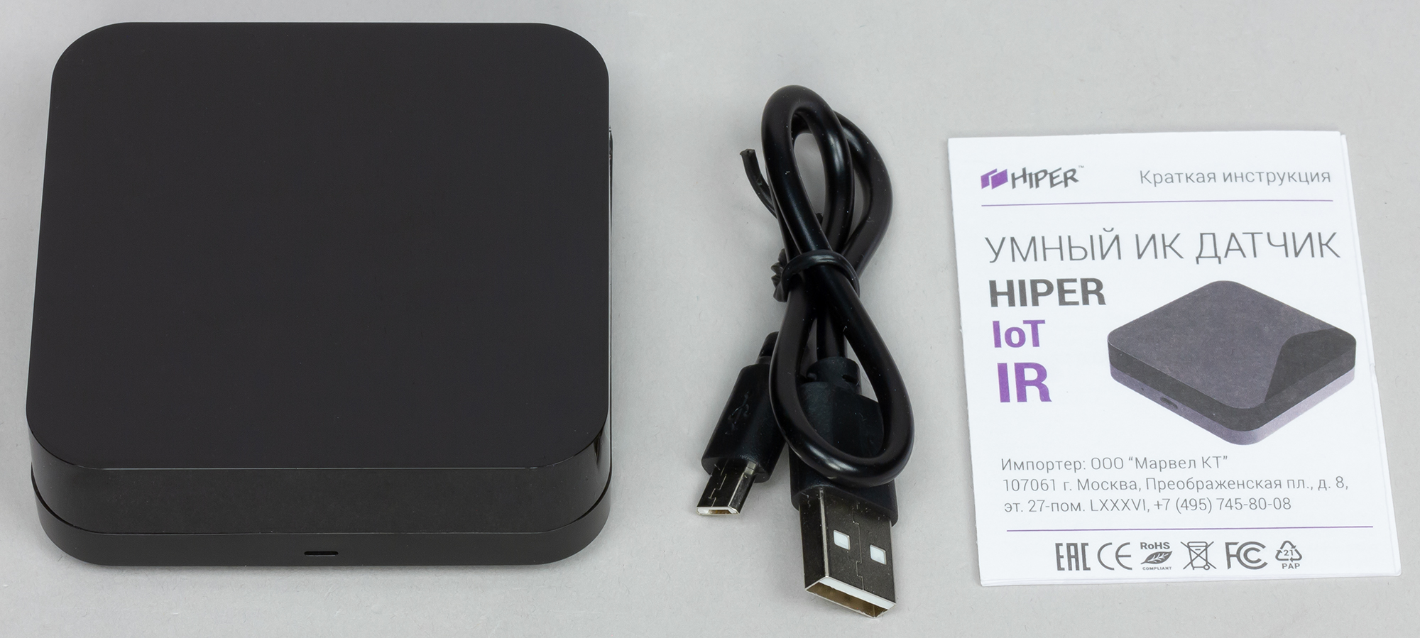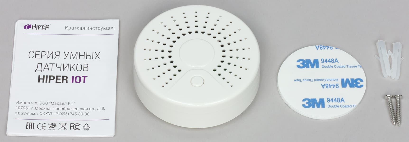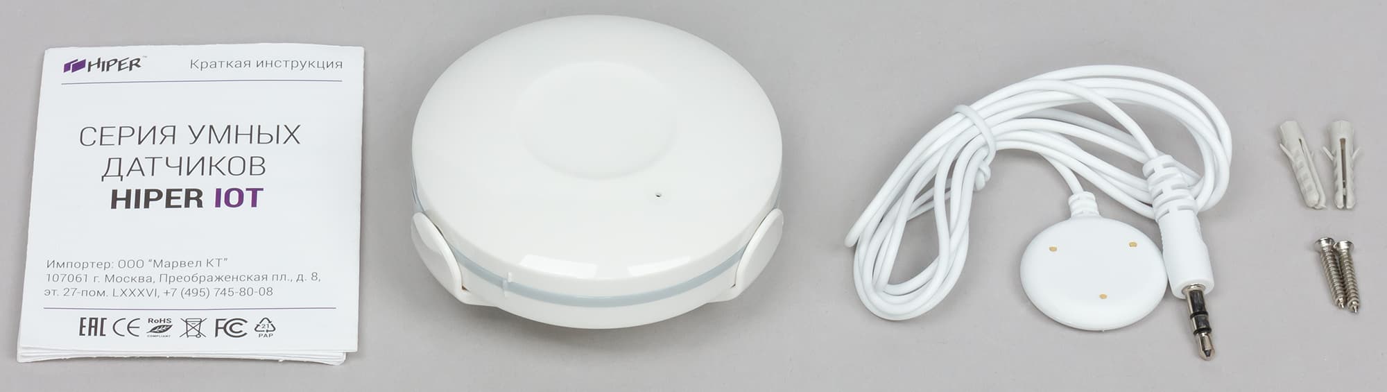 Помимо непосредственно датчика, инструкции и крепежных элементов к Hiper IoT W1 прилагается небольшой выносной блок, который можно разместить даже в труднодоступных местах.