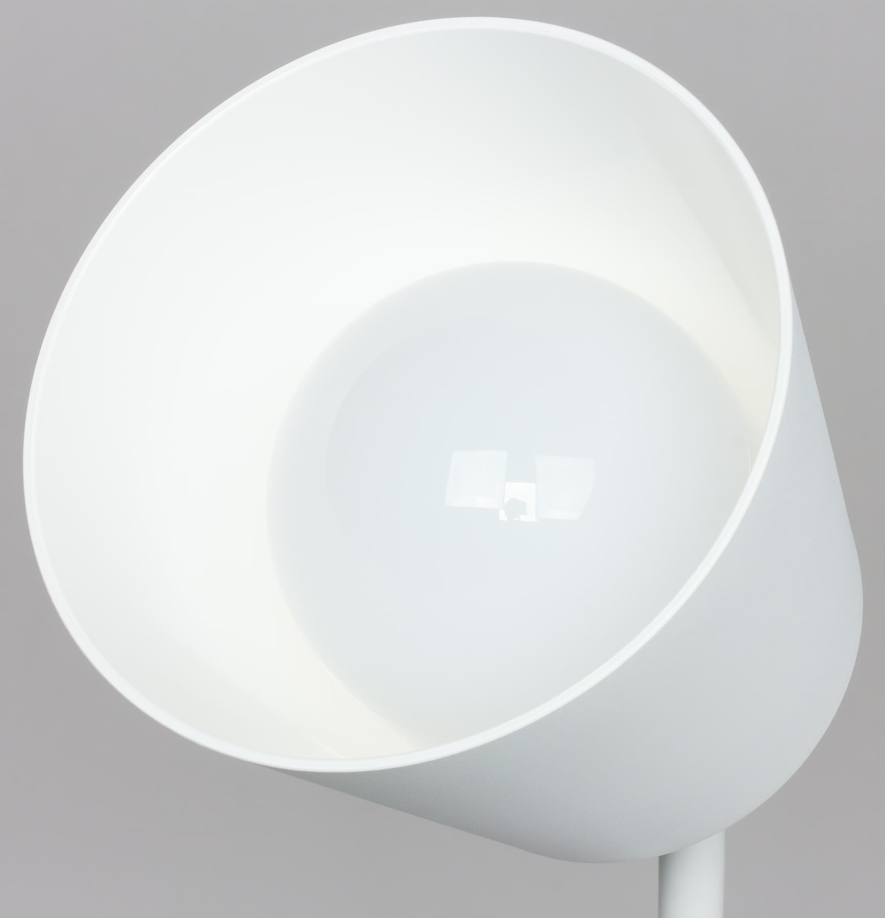 Светильник обладает максимально лаконичным дизайном и выполнен в белом цвете, благодаря чему будет органично смотреться практически в любом интерьере. Верхняя часть «ножки» является гибкой и позволяет регулировать направление светового потока.