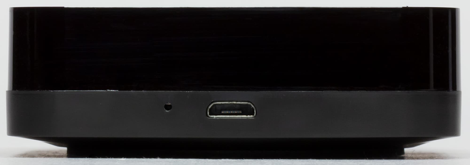 С одной из сторон расположен порт Micro-USB для подачи питания, рядом с ним — отверстие кнопки активации подключения, нажатие которой производится тонким предметом а-ля скрепка.