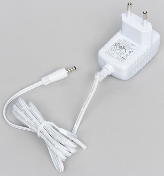 Блок питания достаточно компактный, при подключении к сетевому фильтру не закрывает корпусом соседние розетки.
