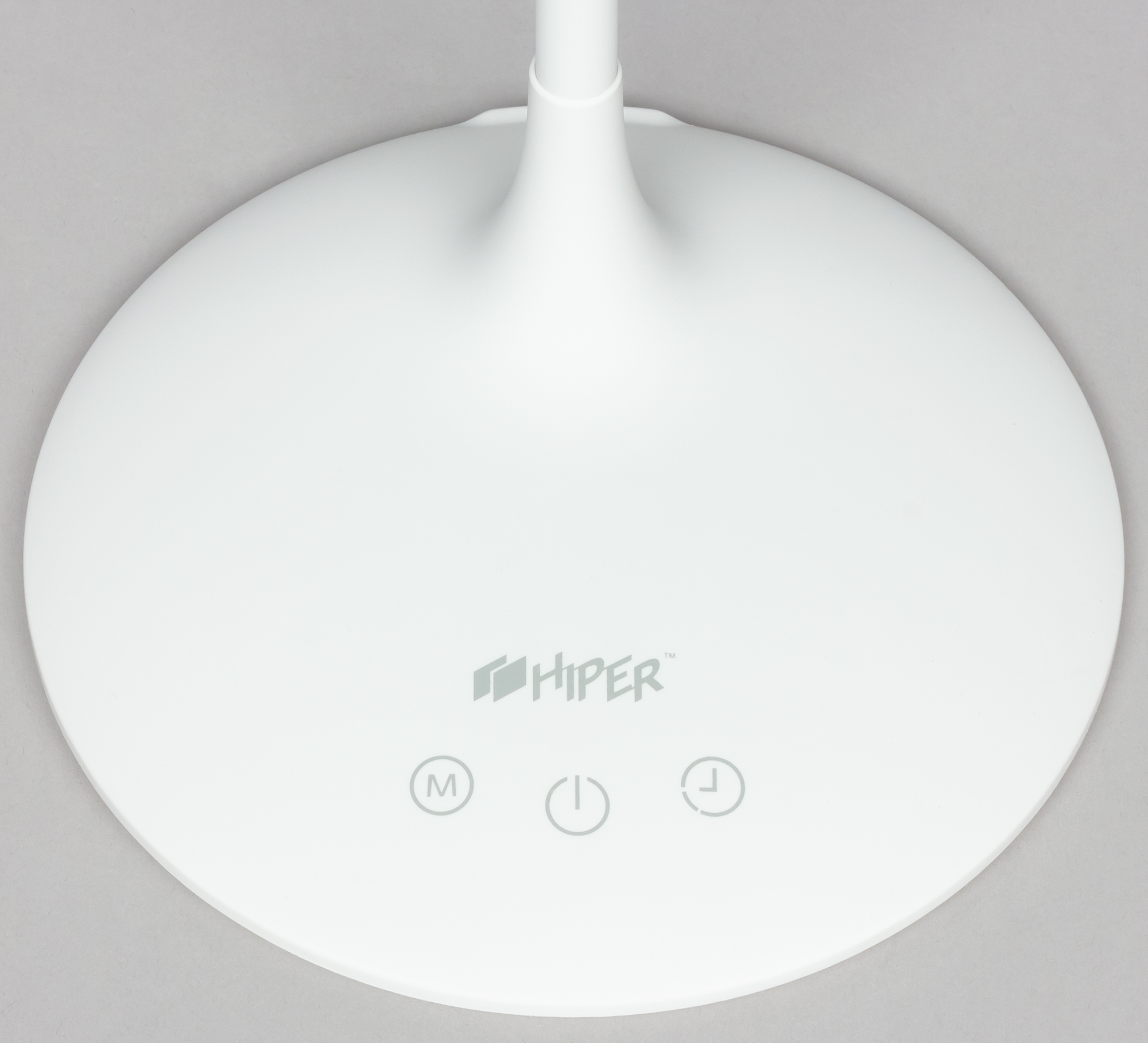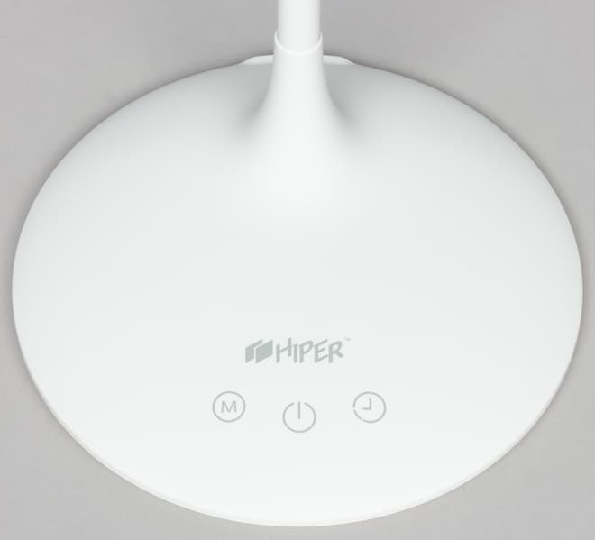 На лицевой части панели расположены логотип и три сенсорных кнопки. Нажатие на первую переключает три режима цветовой температуры, средняя по короткому нажатию включает и выключает устройство, а по длинному — меняет яркость. Подробной информации по последней кнопке в инструкции к устройству не оказалось, но опытным путем было выяснено, что при длительном нажатии она запускает таймер выключения через 40 минут. О запуске таймера лампа сообщает двукратным миганием.