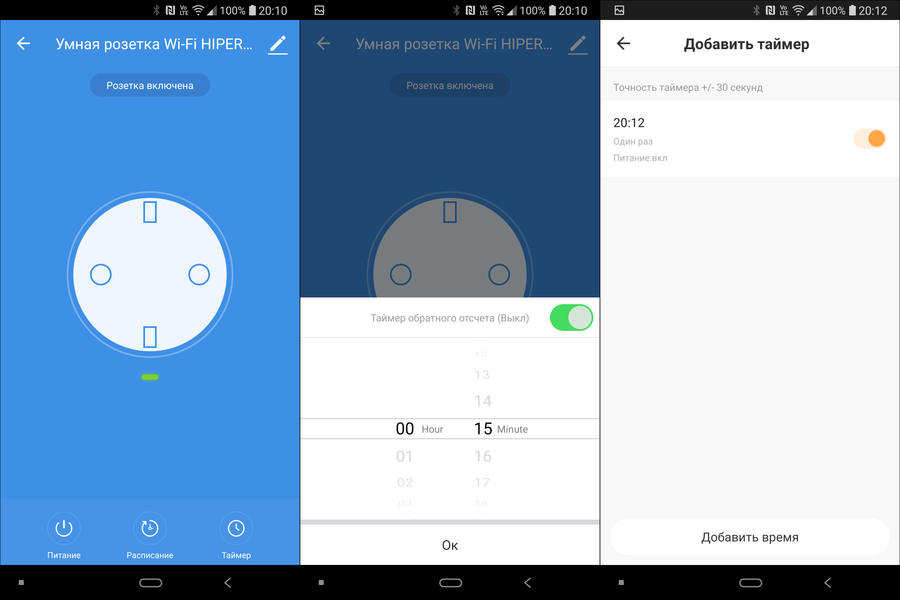 В соответствующем разделе приложения розетку можно включать и выключать, в том числе — по таймеру обратного отсчета и по расписанию. При включении-отключении от сети обе розетки восстанавливают последнее состояние — если они были выключены, то выключенными и останутся. Так что с безопасностью все в порядке.