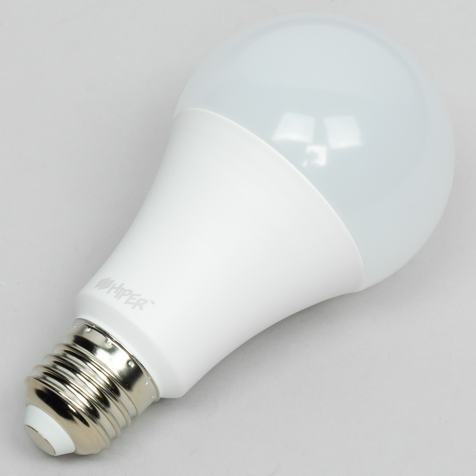 У основания цоколя лампочки Hiper расположен логотип компании, качество сборки хорошее — швы аккуратные, выглядит очень добротно.