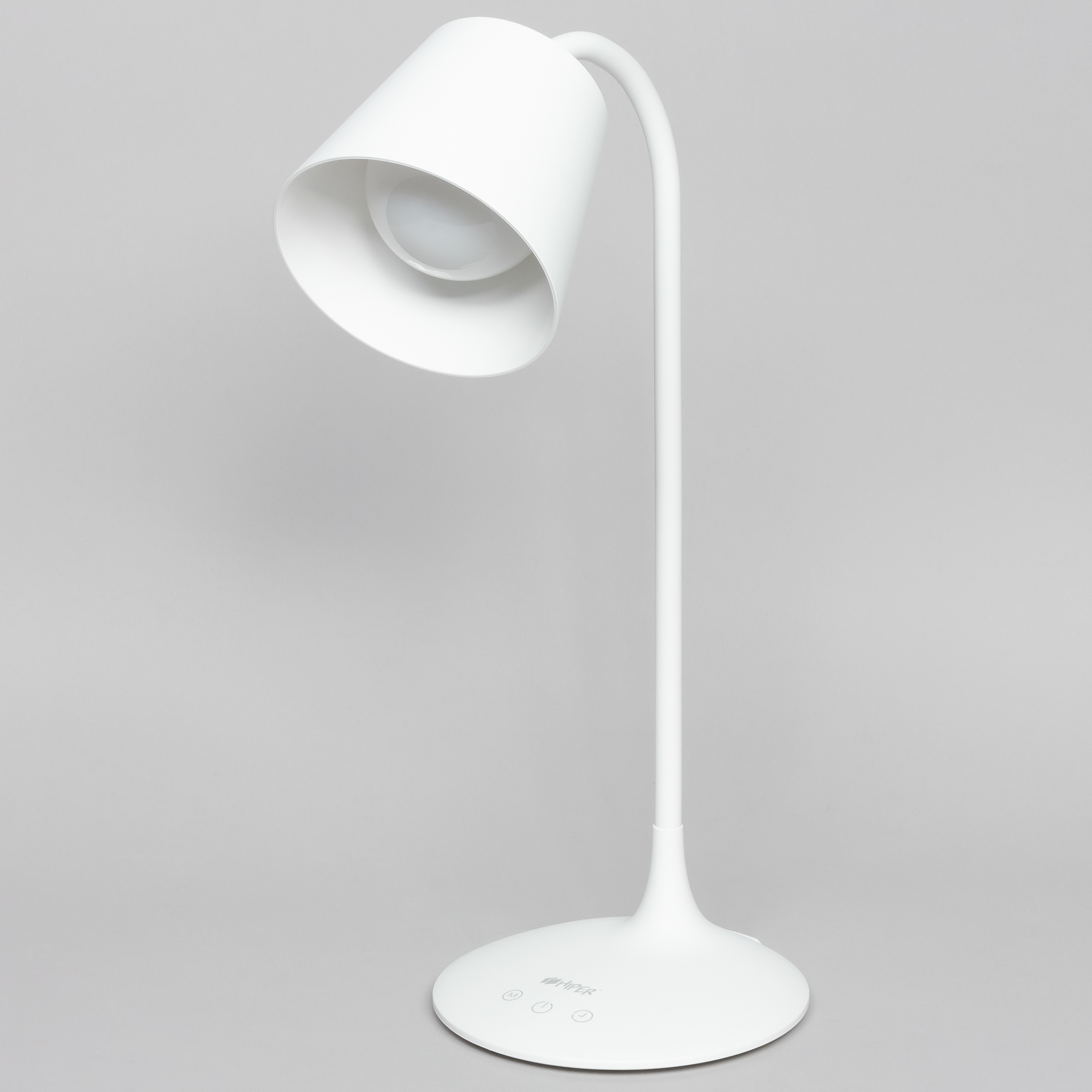 Начнем разговор с двух устройств для организации освещения — настольного светильника и лампочки с цоколем E27. В ассортименте у Hiper есть два «умных» светильника: loT DL221 и loT DL331, отличающиеся формой лампы. К нам на тестирование попал второй вариант.