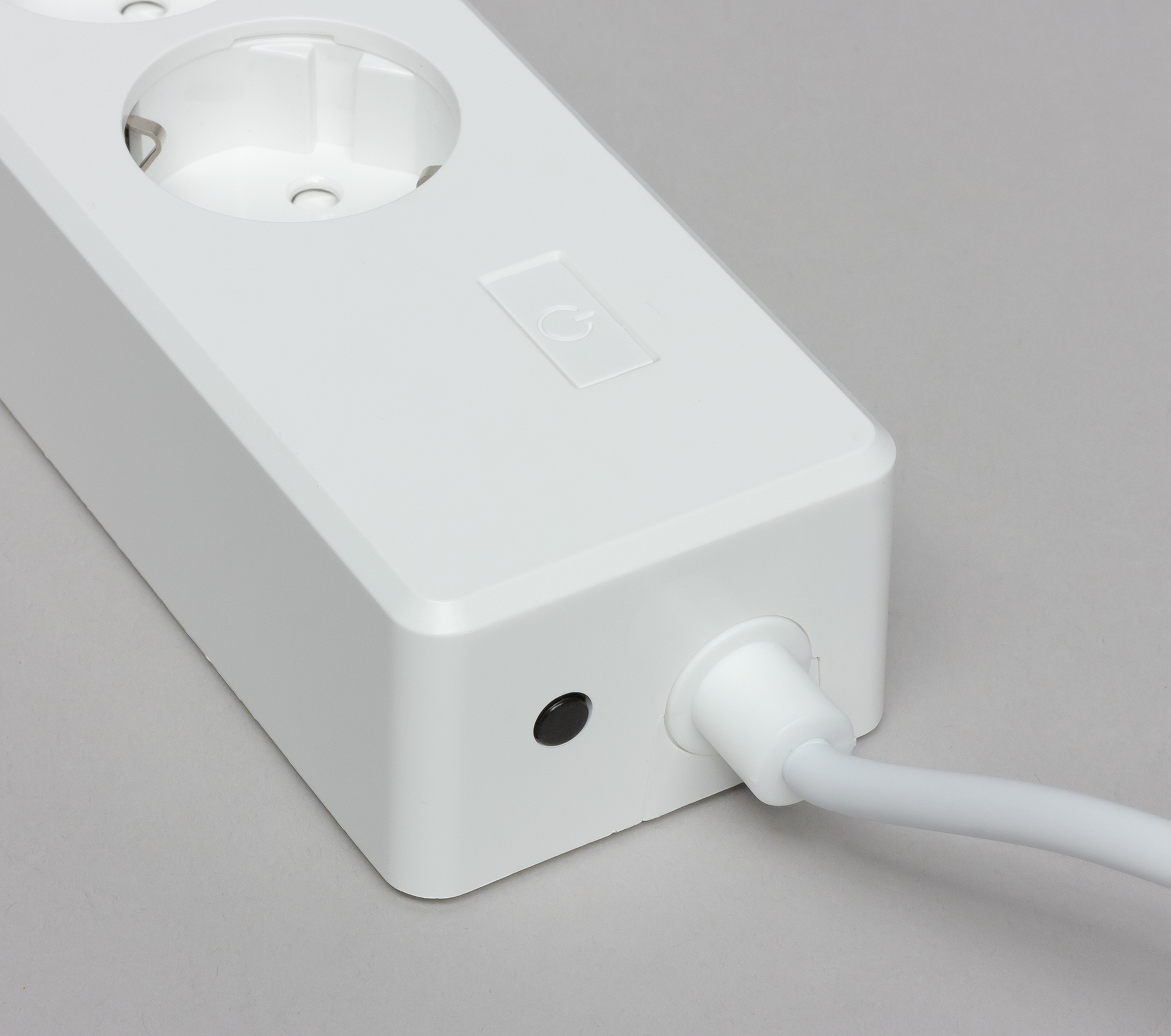 Сетевой фильтр выполнен в белом корпусе, имеет четыре розетки Schuko и четыре USB-выхода. Возле каждой из розеток и группы USB находятся небольшие светодиодные индикаторы включения. Физическая кнопка одна — она отвечает за включение и выключение всего устройства, а также активацию режима подключения (при длительном нажатии в течение 6 секунд).