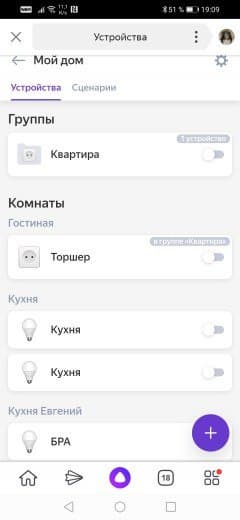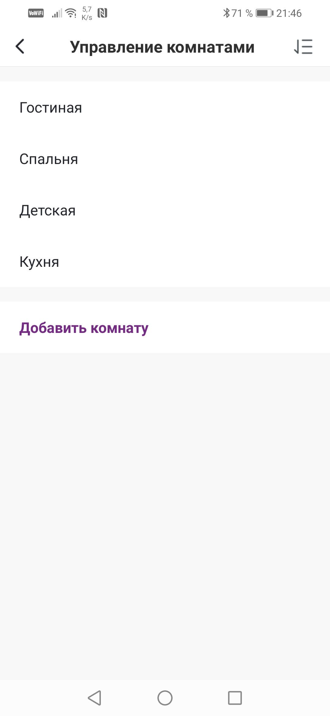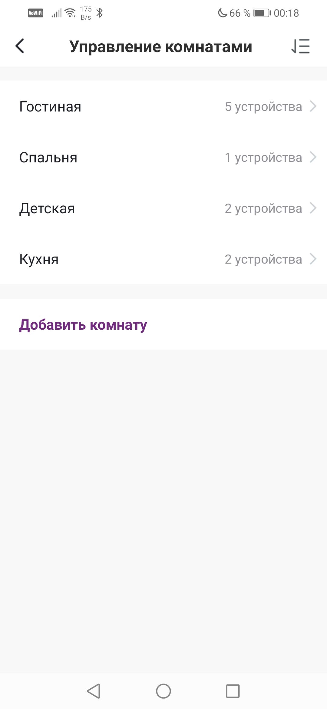 Просмотр подключенных устройств возможен в разных режимах и с разными типами сортировки. Любое устройство всегда разрешается переместить из одной комнаты в другую, отредактировать его свойства или вовсе удалить из Дома.