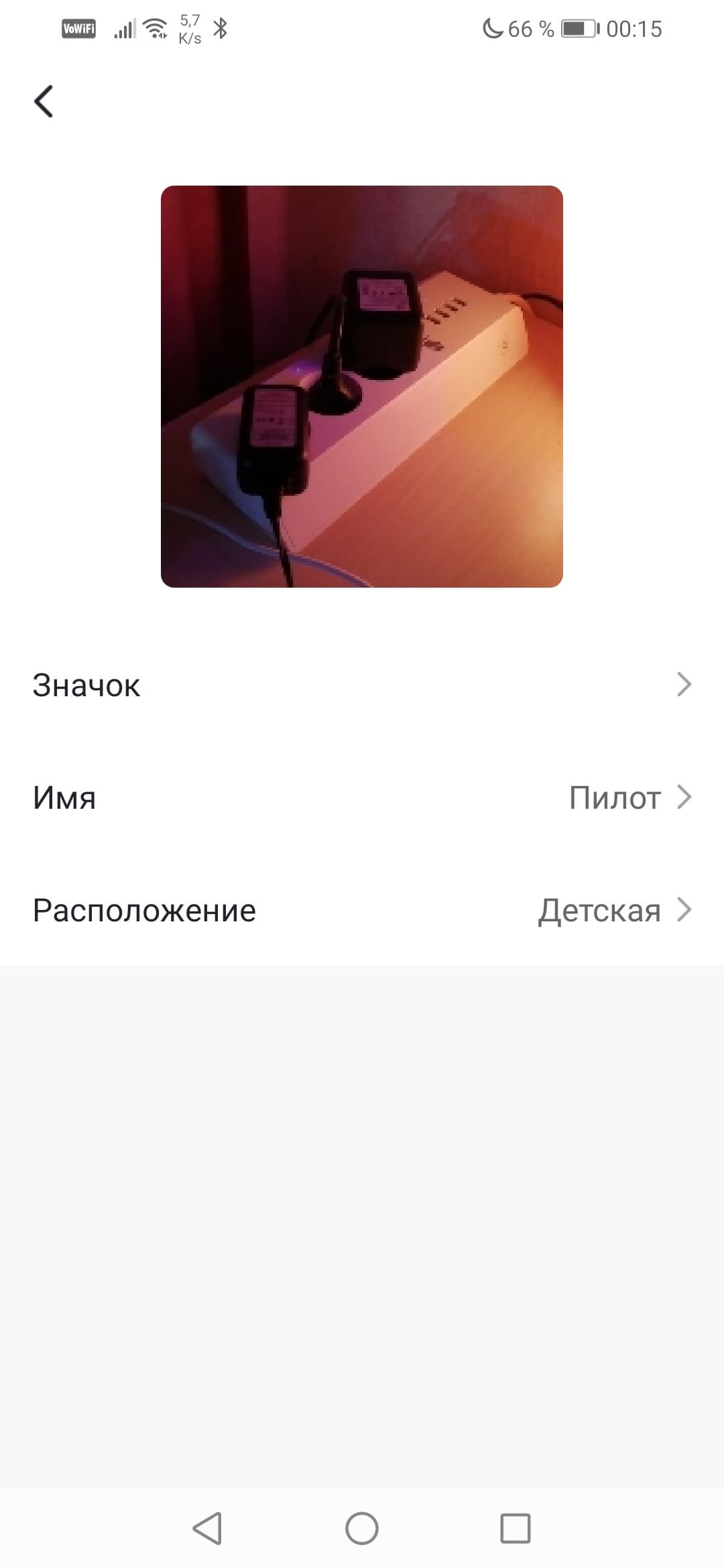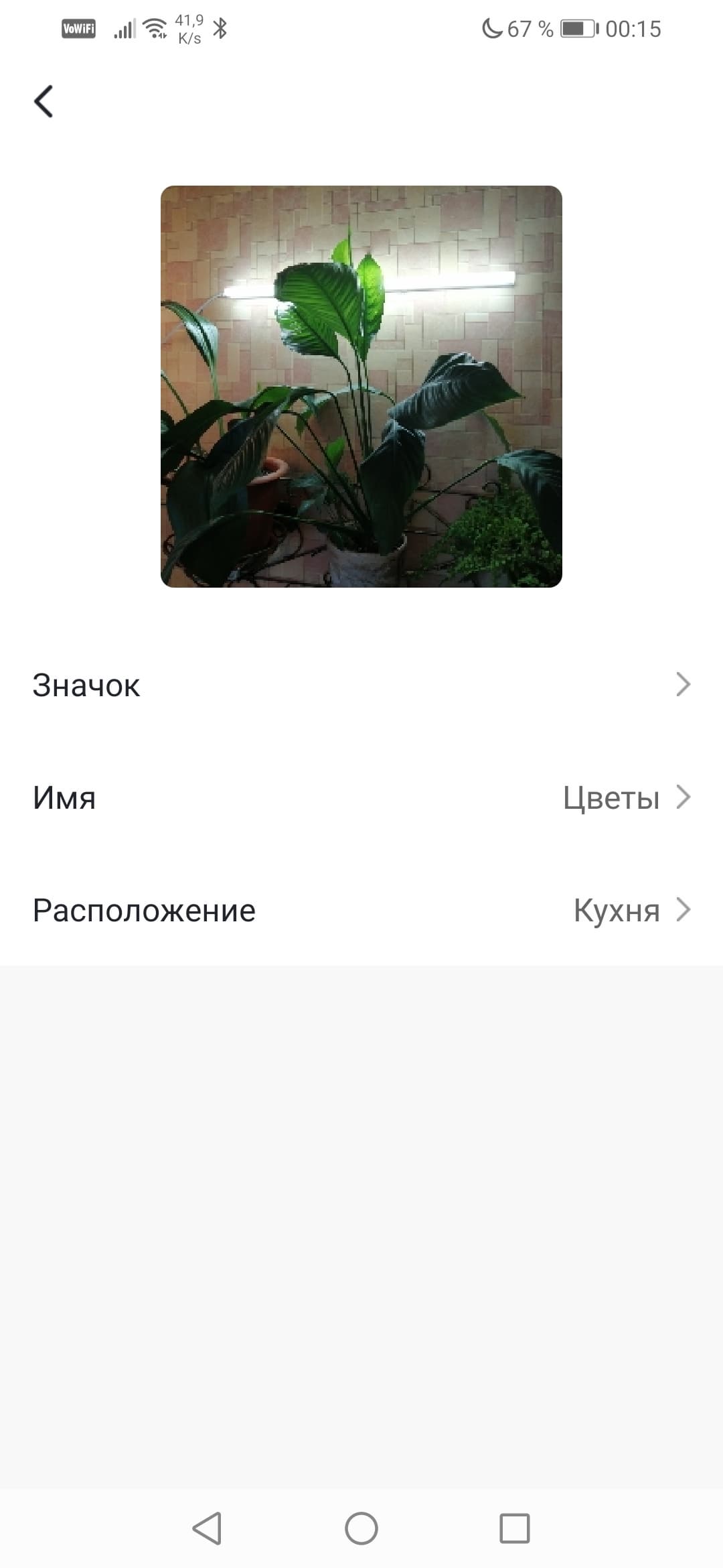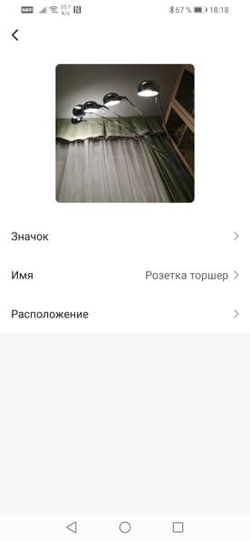 После того, как устройство появилось в виртуальной комнате, его можно переименовать, «переместить» в нужную комнату, а также изменить значок. В качестве иконки можно использовать даже фотографию устройства или прибора, которым это устройство управляет. Очень наглядно получается. Если название выбрано не слишком удачно, то уж по фотографии наверняка поймешь, что это за устройство такое и где оно находится.